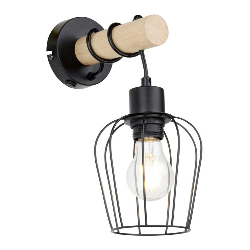 La lámpara de pared Fabian, con un estilo industrial, será una pieza única para el salón, el comedor, la cocina o incluso el dormitorio. Este modelo, compuesto por una luminaria negra mate y una pantalla del mismo color, está fabricado en metal y madera. La lámpara se puede fijar a la pared mediante una base decorativa redonda. La base decorativa está conectada a la pantalla por un cable enrollado y oculto dentro de un cilindro de madera, que aporta a este diseño un aspecto rústico y natural. La luz fluye sin obstáculos desde debajo de la pantalla que recuerda a una jaula. La lámpara Fabian es compatible con una única bombilla de hasta 40W. El tipo de casquillo es E27. Para lograr un efecto limpio y brillante en la habitación, elija una bombilla que emita luz blanca natural. La lámpara Fabian se puede controlar mediante un interruptor ubicado en la base decorativa. Las dimensiones de esta lámpara son las siguientes: ancho de la luminaria y diámetro de la pantalla de 140 mm, altura de la bombilla 300 mm, distancia desde la pared 220 mm. Este modelo se entrega sin fuente de luz.