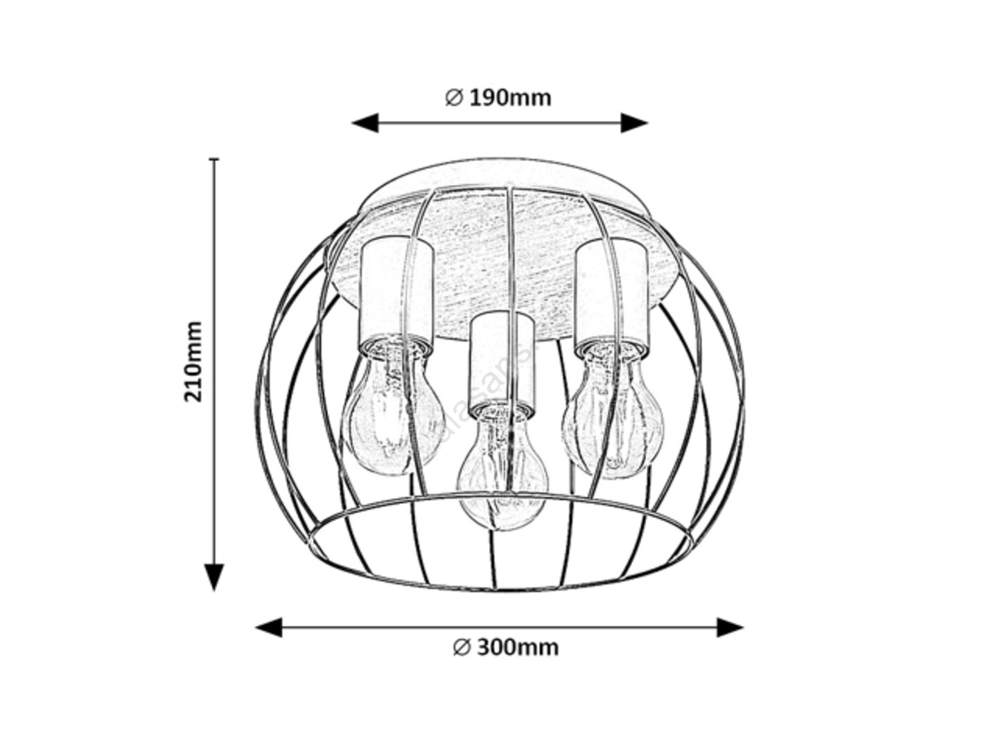La lámpara de techo Kamala, que representa el estilo industrial, será una pieza distintiva en la decoración de su sala de estar, comedor o dormitorio. Este modelo, fabricado en metal y madera, está complementado con una pantalla redonda con una franja negra, abierta en la parte inferior, y se puede fijar al techo mediante una base decorativa redonda de madera. La lámpara Kamala puede utilizar 3 bombillas, cada una con una potencia máxima de 25W. El tipo de casquillo es E27. Si coloca la lámpara en el dormitorio, recomendamos bombillas que emitan luz blanca cálida, que le ayudarán a crear un ambiente acogedor e íntimo para su relajación antes de dormir. Las dimensiones de la lámpara de techo son las siguientes: diámetro 300 mm, distancia desde el techo 210 mm, diámetro de instalación 190 mm. Este modelo se suministra sin fuentes de luz.