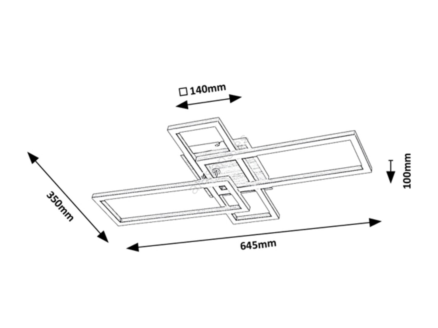 La lámpara de techo Ashton, que combina formas rectangulares, será una pieza distintiva para la decoración de su sala de estar moderna, comedor o dormitorio. La lámpara metálica en acabado cromo satinado se complementa con pantallas de plástico blancas. Se puede fijar al techo mediante una base decorativa rectangular en color haya. Tres elementos rectangulares entrecruzados garantizan el diseño único del modelo Ashton. La lámpara de techo incluye una fuente de luz LED integrada con una potencia de 24W, un flujo luminoso de 1870 lúmenes y una temperatura de color de 4000K. La luz blanca natural de esta lámpara crea un efecto limpio y moderno en la habitación. Las dimensiones de la lámpara Ashton son: ancho 645 mm, altura 350 mm, distancia desde el techo 100 mm, diámetro de instalación 140 mm. Este modelo cuenta con una garantía de 5 años.