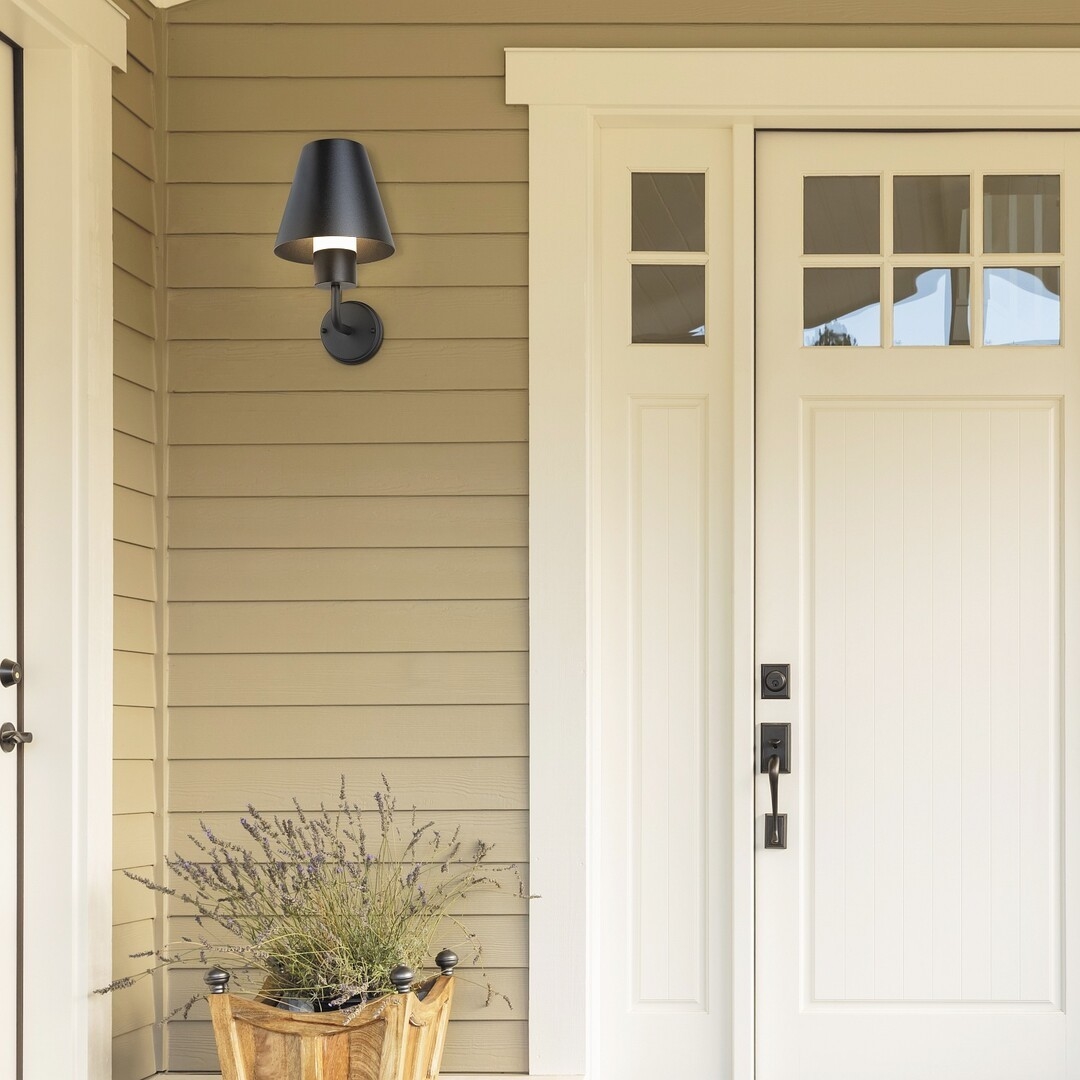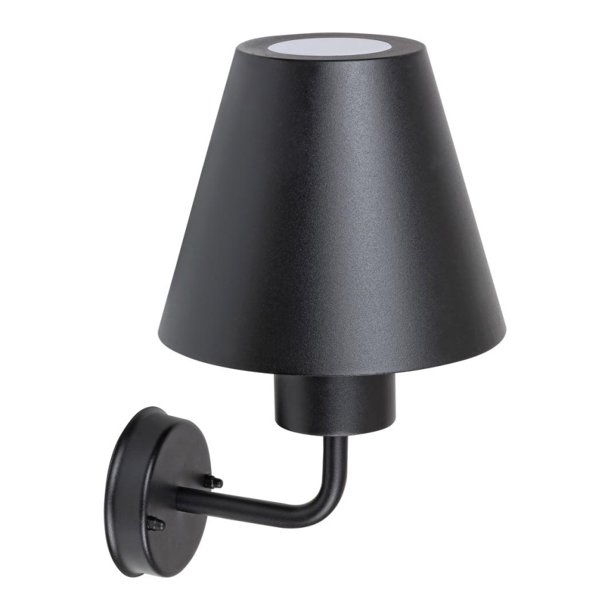 La lámpara de pared exterior Favara evoca las clásicas lámparas de lectura con pequeñas pantallas en cuanto a su forma. Sin embargo, este modelo transmite una impresión muy moderna gracias a su color y material. La lámpara metálica negra, acompañada de una base decorativa redonda, será un complemento elegante para su veranda. Puede colocarla cerca de la puerta principal o junto a una mesa. La lámpara Favara puede utilizarse con una fuente de luz de hasta 14 W. Tipo de casquillo: E27. La lámpara se suministra sin fuente de luz. Las dimensiones de la lámpara exterior son: ancho 220 mm, alto 365 mm, distancia desde la pared 245 mm. Su protección IP44 garantiza que está protegida contra la penetración de objetos con un diámetro máximo de 1 mm y contra salpicaduras de agua desde cualquier dirección.