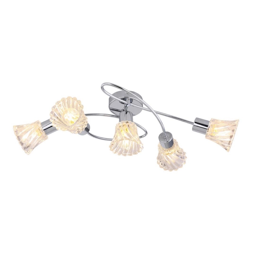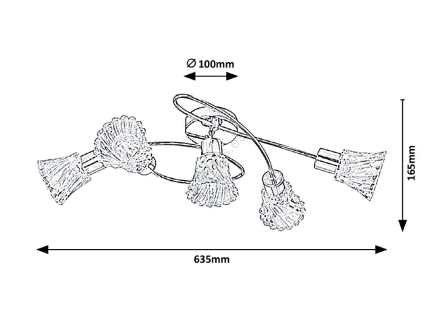 La lámpara de techo Hestia con 5 bombillas en estilo clásico será un mueble elegante en su sala de estar o dormitorio. La luminaria metálica cromada, que recuerda a zarcillos retorcidos, está complementada con pantallas de vidrio transparente. La lámpara se puede fijar al techo mediante una base decorativa redonda. La particularidad de las pantallas en forma de campana es el efecto retorcido de su superficie ondulada. Las cinco cabezas de la lámpara, orientadas en diferentes direcciones, garantizan una iluminación suficiente en cada rincón de la habitación. Esta lámpara de techo puede utilizar cinco bombillas, cada una con una potencia máxima de 40W. El tipo de casquillo es E14. Si desea mejorar la atmósfera íntima y acogedora, elija fuentes de luz de color blanco cálido para esta lámpara. Las dimensiones de la lámpara de techo Hestia con 5 bombillas son las siguientes: ancho 635 mm, distancia desde el techo 165 mm, diámetro de instalación 100 mm. Este modelo se entrega sin fuentes de luz.
