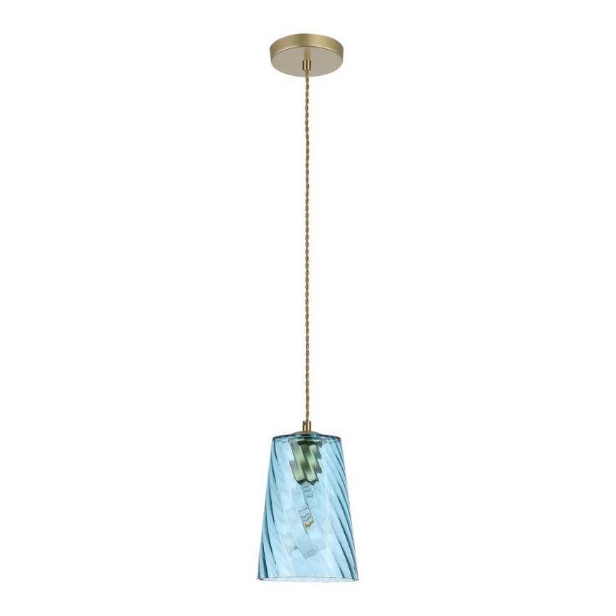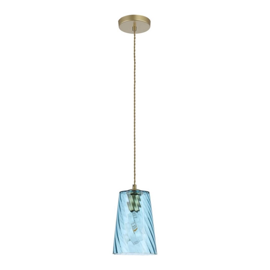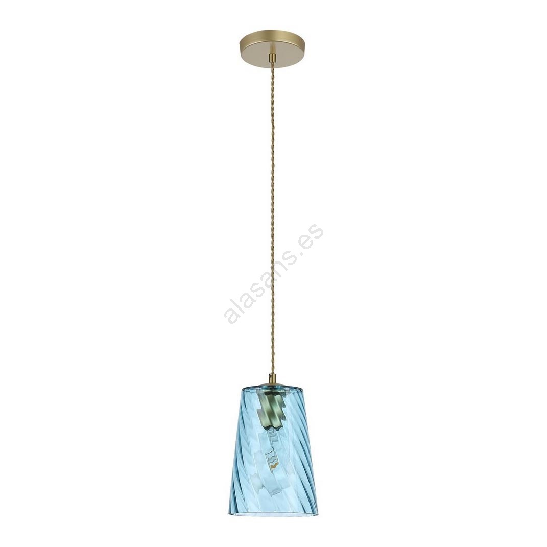 Fiel a su nombre, la lámpara colgante moderna Azurine llenará su sala de estar o dormitorio con un brillo azul celeste y cristalino. La luminaria está fabricada en metal y vidrio, con una combinación de colores especialmente elegante en azul y dorado; la cabeza de la lámpara está unida a una base decorativa redonda dorada mediante un cable textil. La superficie ondulada de la pantalla de vidrio alargada en forma de campana evoca el mar. La lámpara Azurine puede utilizarse con una bombilla de hasta 40W, con casquillo E27. Para mejorar la atmósfera íntima del hogar, le recomendamos elegir una fuente de luz blanca cálida para esta lámpara. Las dimensiones de la lámpara colgante Azurine son las siguientes: diámetro de la pantalla 150 mm, distancia desde el techo 1750 mm, diámetro de instalación 120 mm. Este modelo se suministra sin fuente de luz.