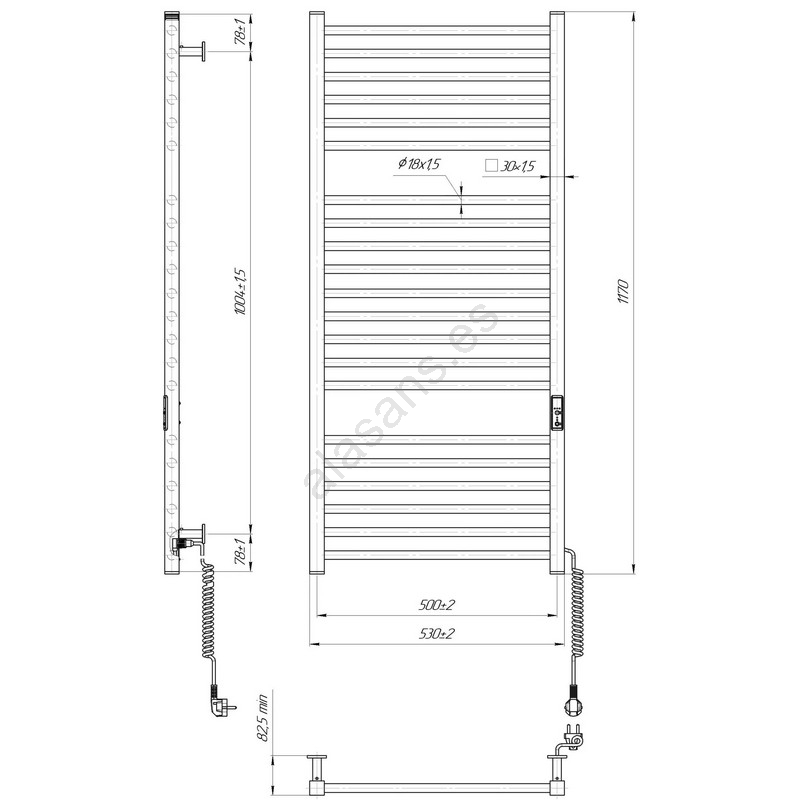 Radiador toallero de baño HF DERBY 255W/230V 117x53 cm negro