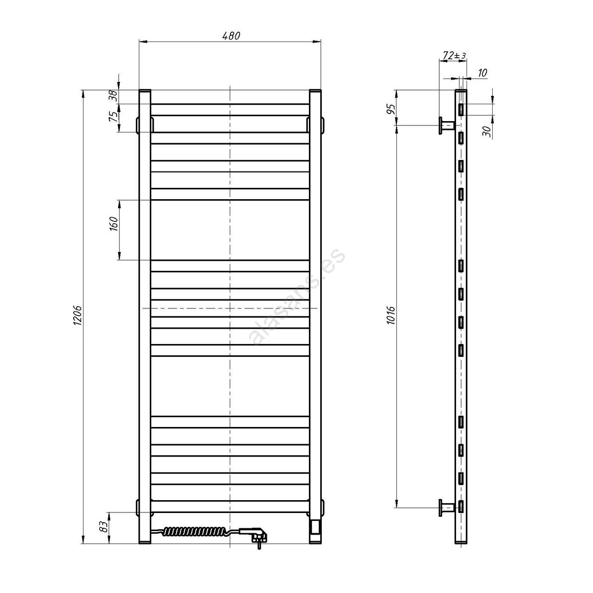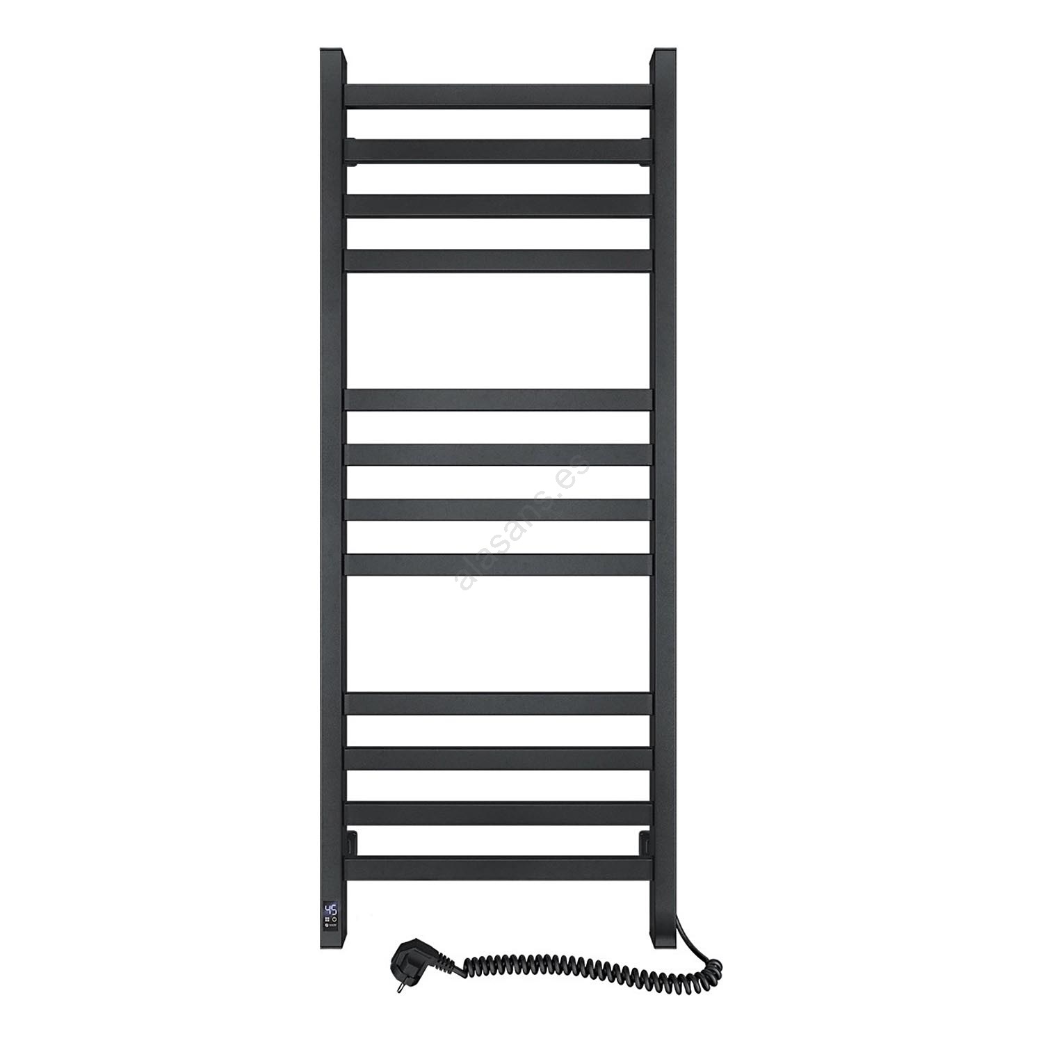 Radiador toallero en escalera para baño AVANGARD con termostato 459W/230V 120,6 cm IP44 negro, con conexión derecha, de perfil cuadrado