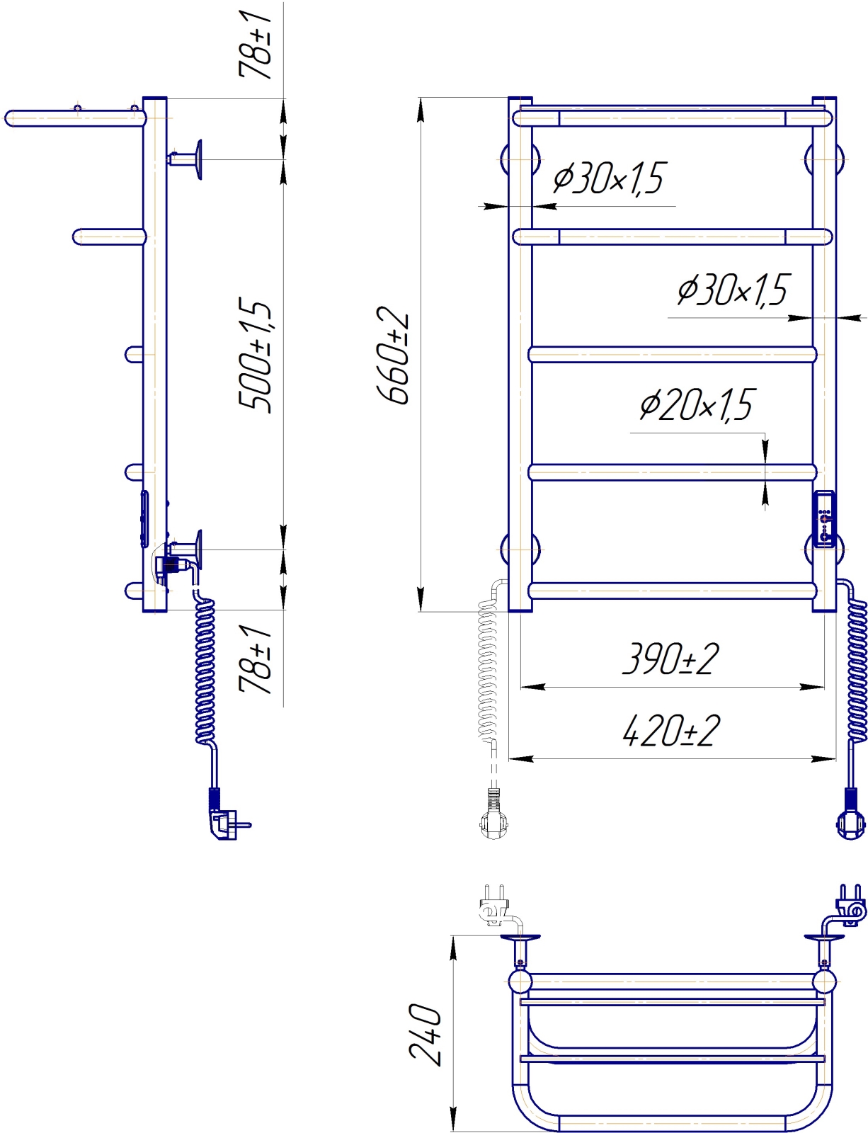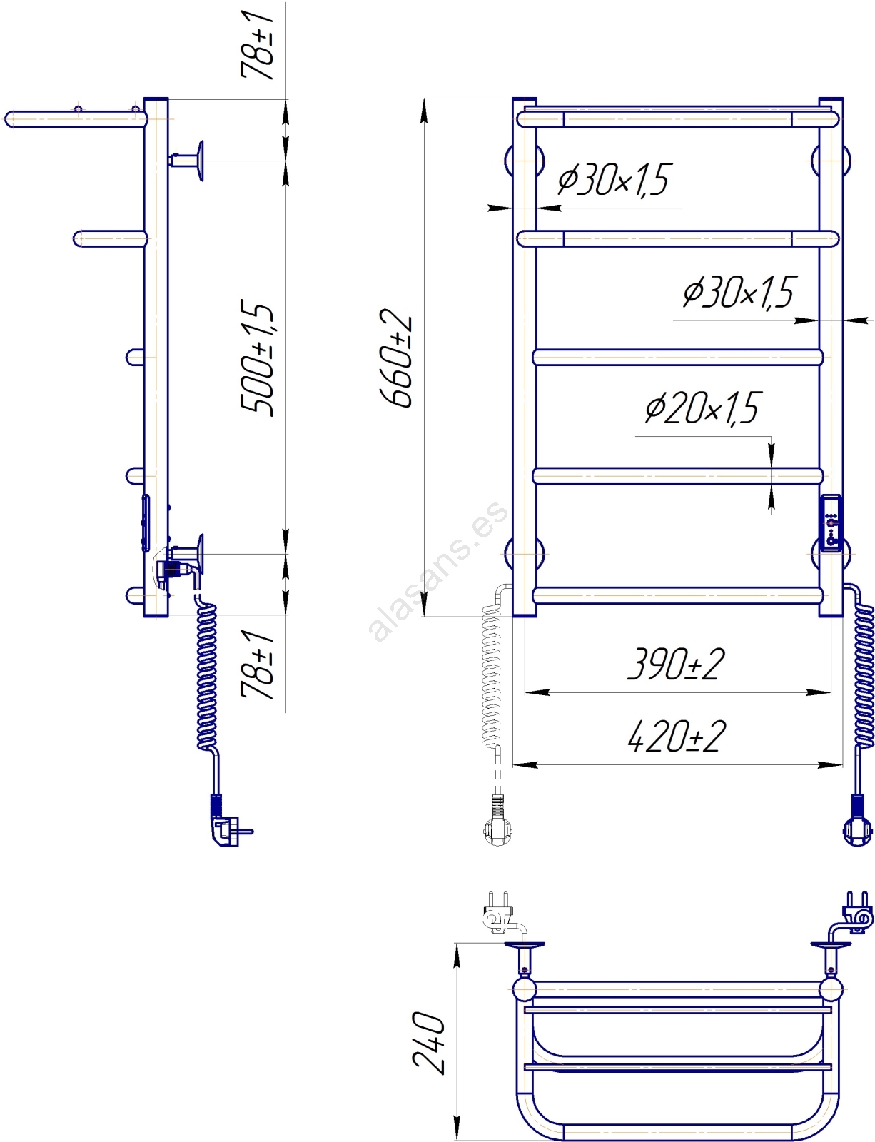 Radiador toallero para baño HOTEL, 75 W/230 V, 65 x 43 cm, acero inoxidable/negro, conexión derecha