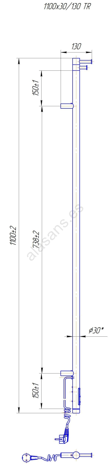 Radiador toallero RAY 25W/230V 110x30 cm IP44 acero inoxidable/ántracita