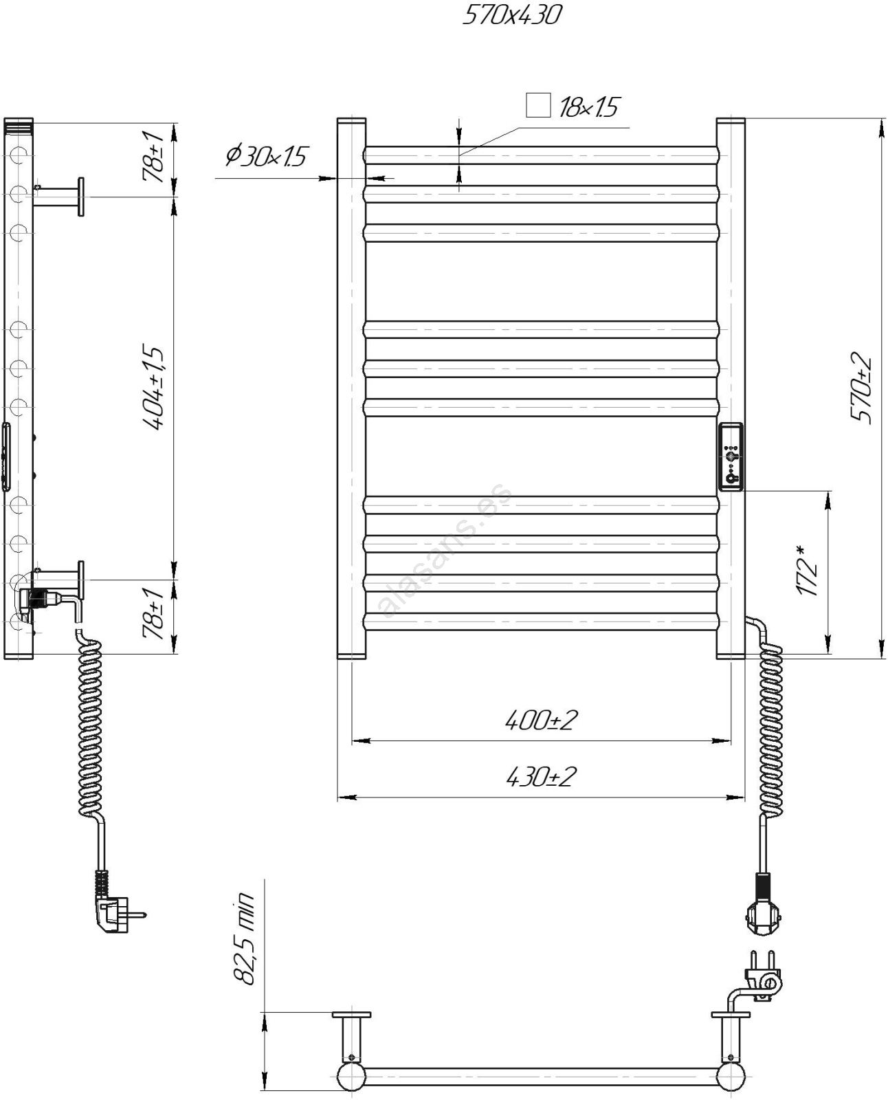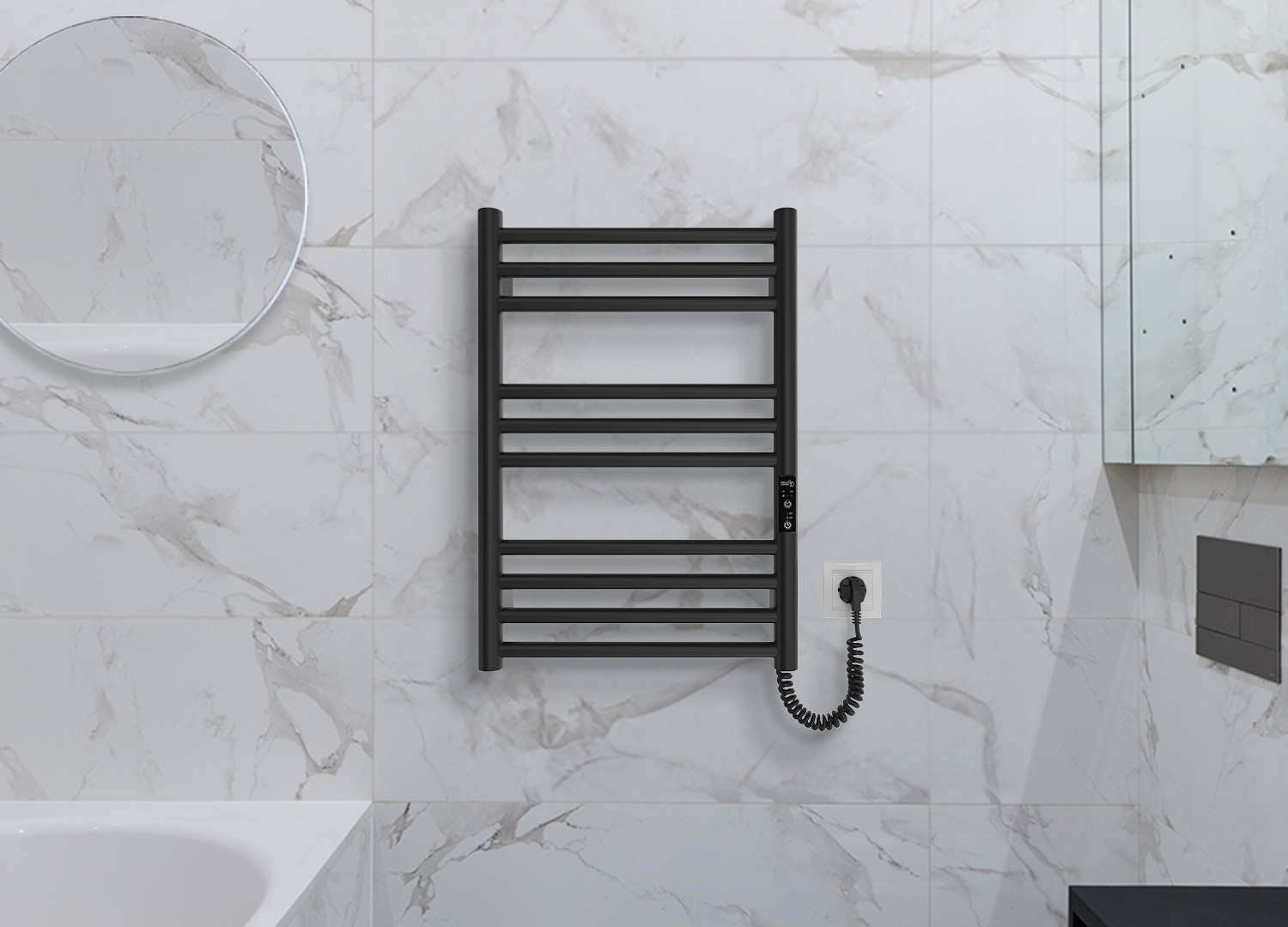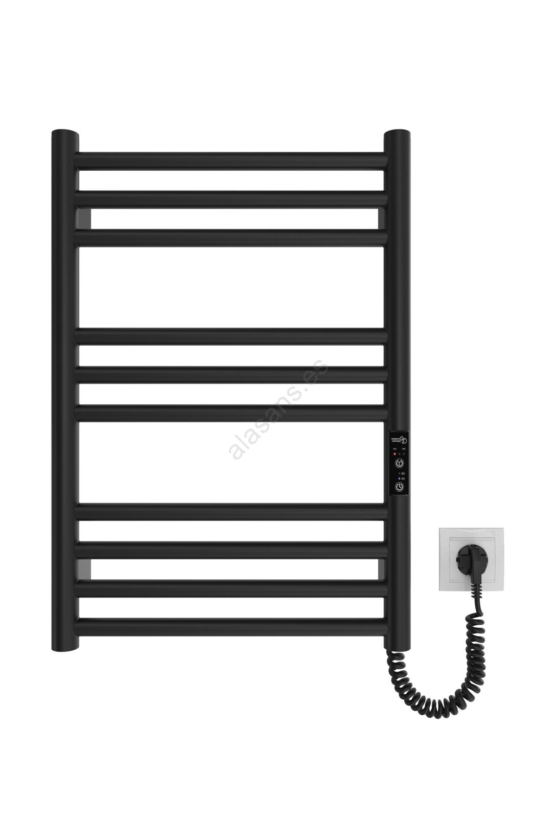 Radiador toallero tipo escalera para baño HF GREENWICH 100W/230V 57x43 cm, negro, conexión derecha, tubos redondos