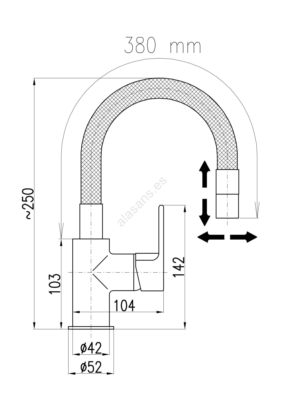 • Su práctico caño giratorio facilita el lavado de la vajilla y la limpieza del fregadero y del lavabo.