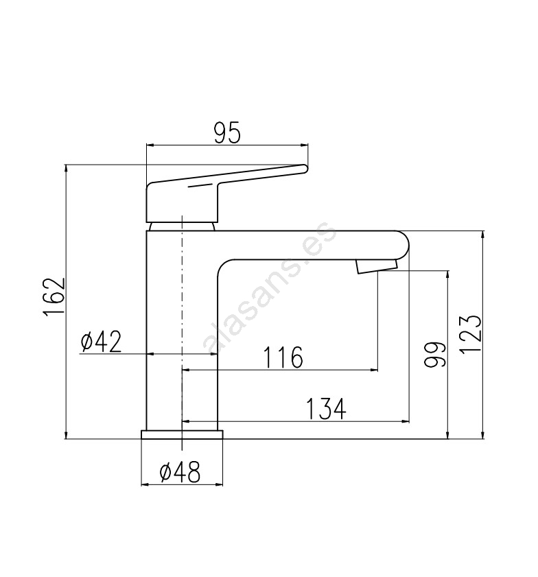 • Grifo monomando de lavabo para montaje sobre encimera con desagüe.