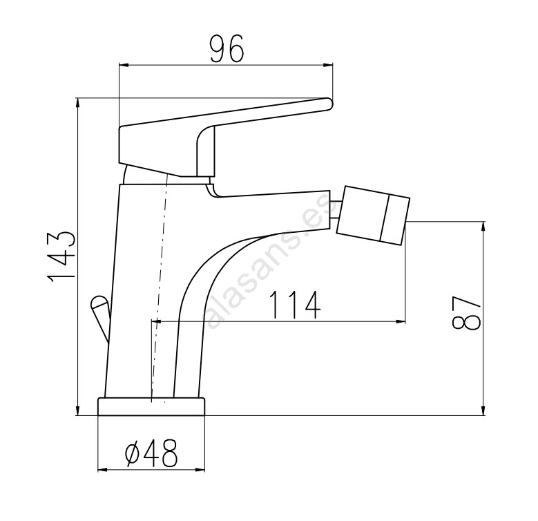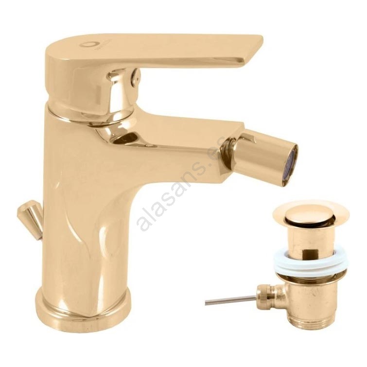 • Grifo monomando para bidé de montaje sobre encimera con desagüe.