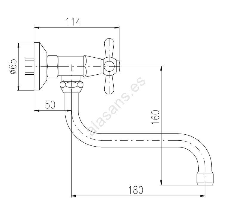 • Grifo mural para fregadero/lavabo con pico redondo de 180 mm.