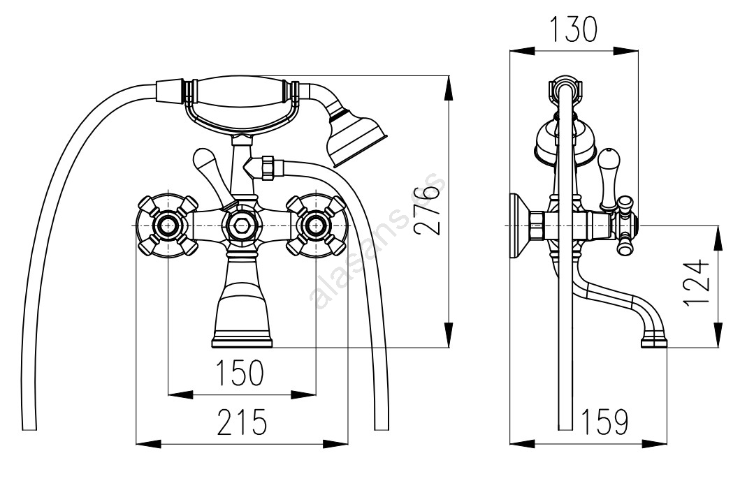 • Contenido del paquete: ducha de mano metálica (Ø 76 mm), manguera de ducha de plástico (longitud 1500 mm), grifería de bañera.