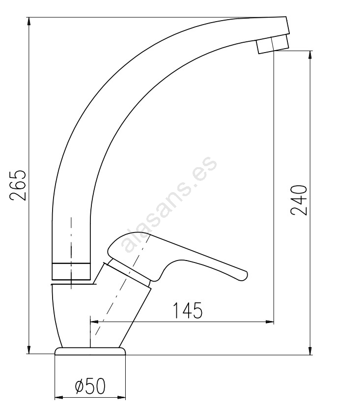 • Grifo de fregadero de instalación sobre encimera con caño giratorio.