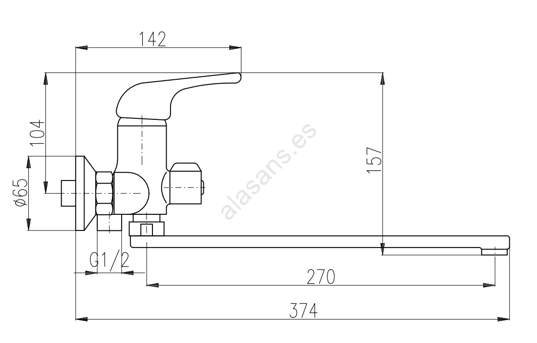 • Grifo de pared para bañera y lavabo con caño plano giratorio.