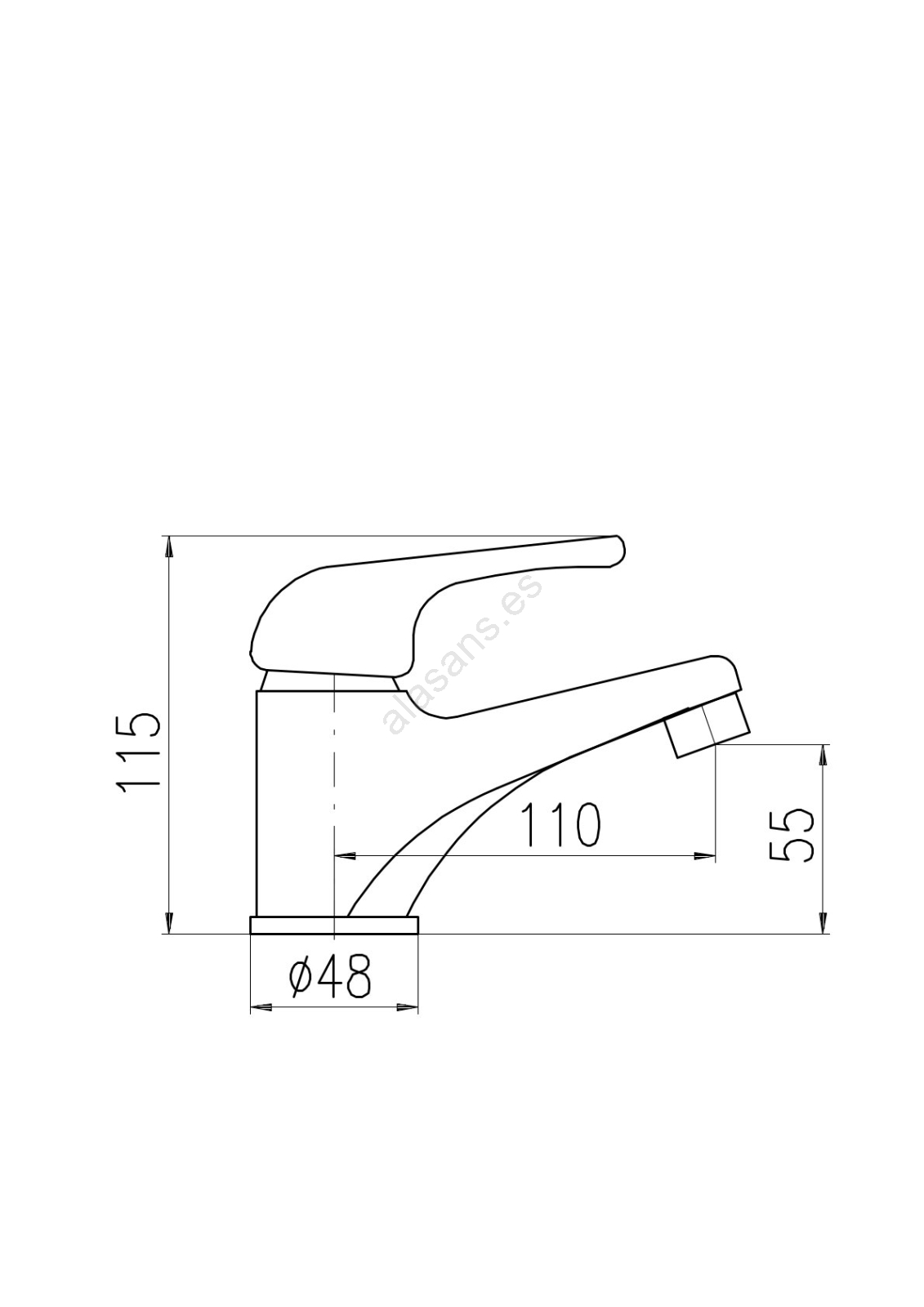 • Grifo monomando de lavabo para instalación sobre encimera sin válvula de desagüe.