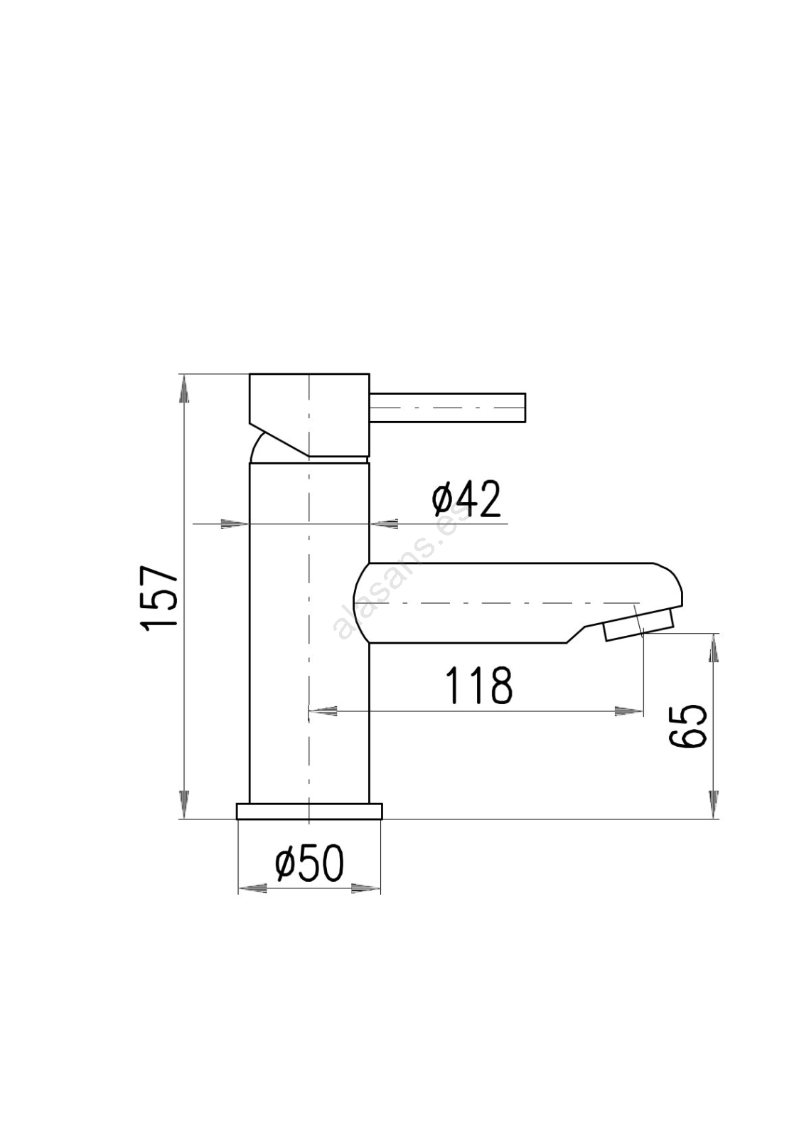 • Grifo monomando para lavabo de instalación sobre encimera sin válvula de desagüe.