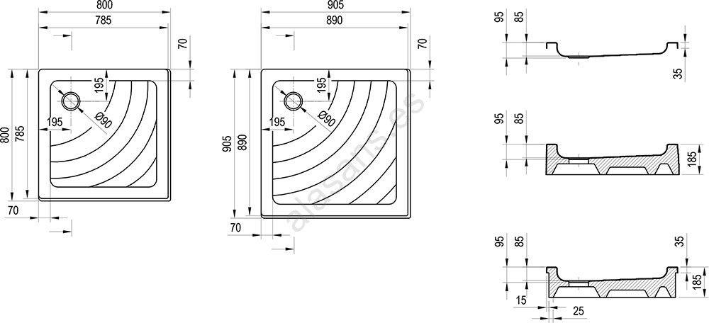 • Plato de ducha cuadrado Angela.