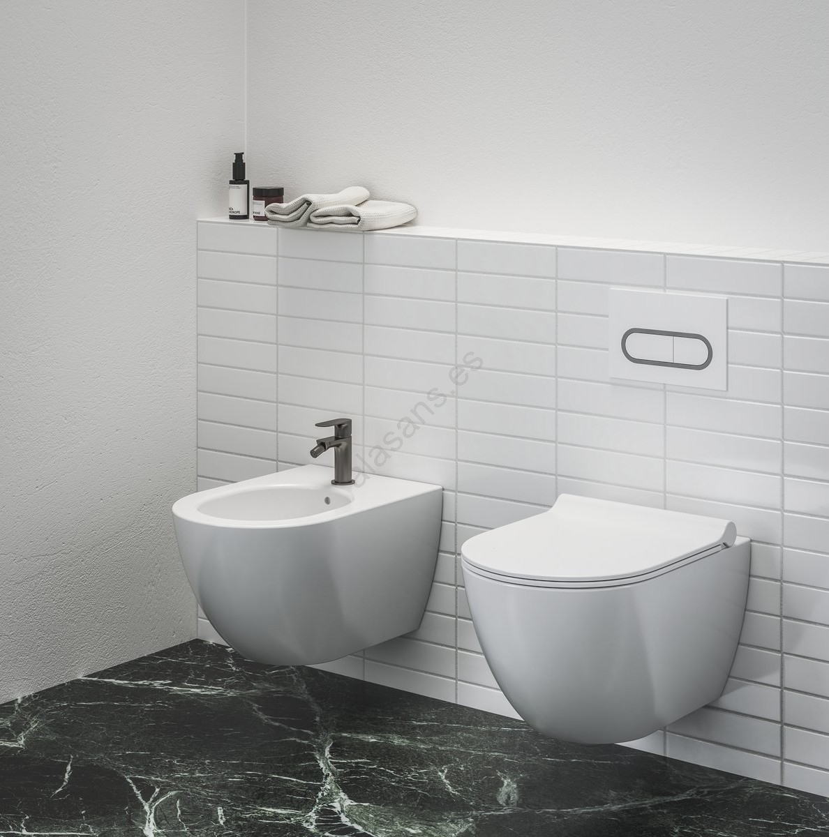 • El bidé suspendido Uni Chrome en acabado blanco combina un aspecto elegante con una funcionalidad práctica para la higiene diaria.
