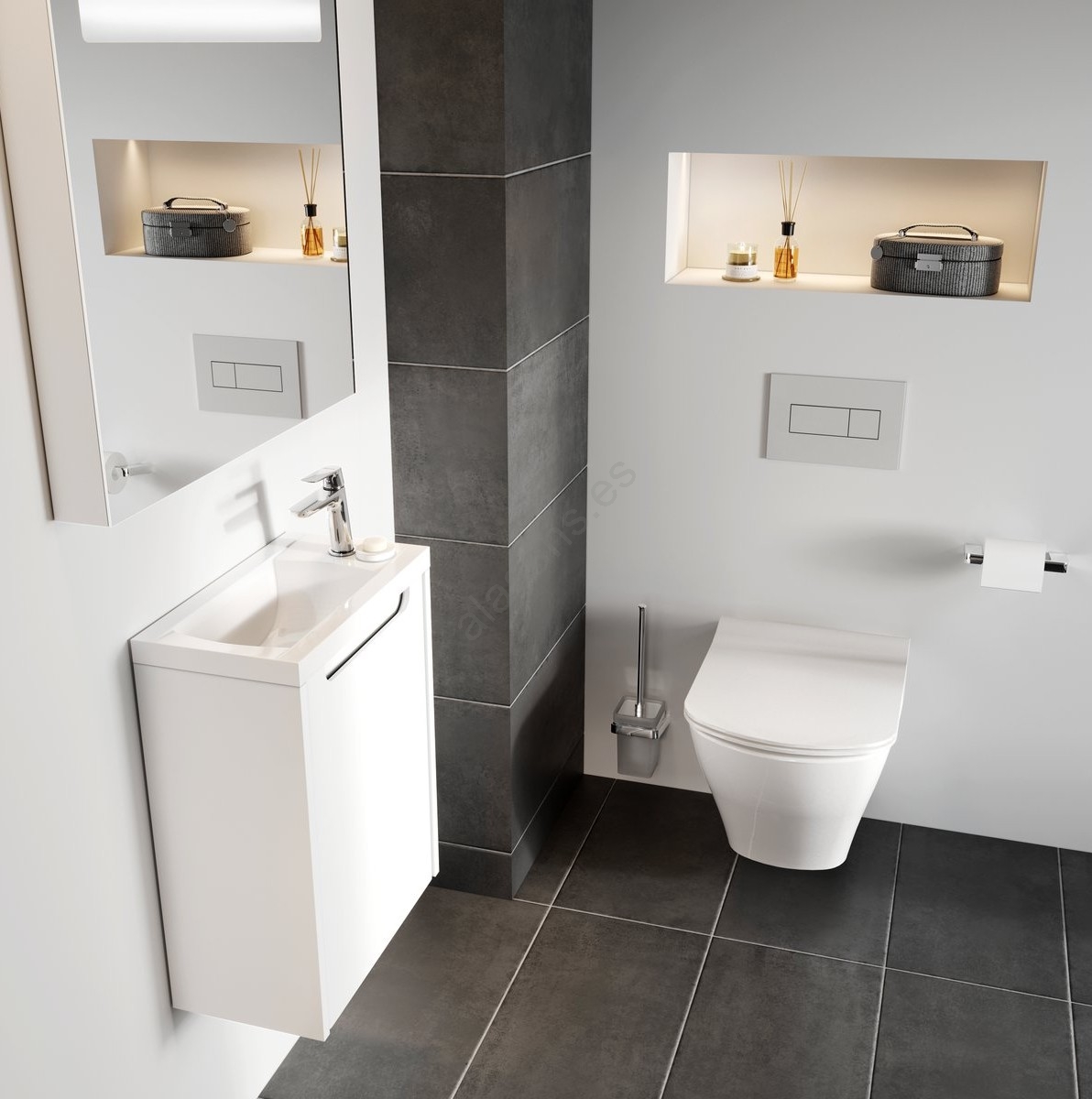 • Para su funcionamiento completo recomendamos adquirir adicionalmente el módulo de instalación para descarga, el pulsador de control y el asiento de inodoro Classic o Classic Slim con sistema de cierre amortiguado SoftClose.