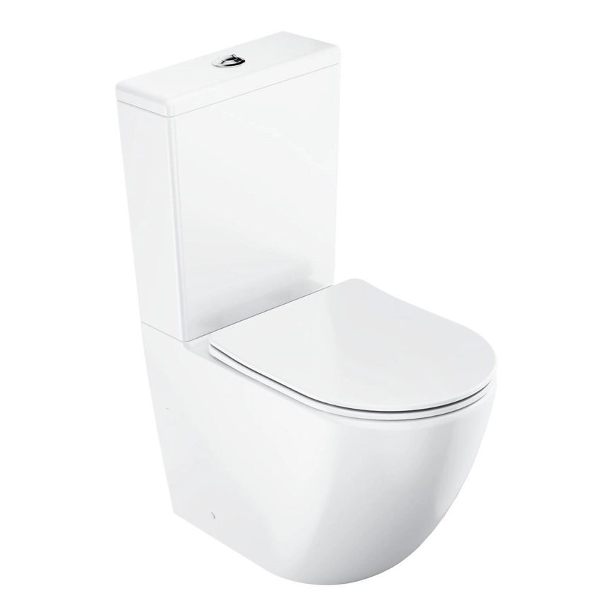 • El conjunto inodoro independiente Optima RimOff se entrega en acabado blanco.