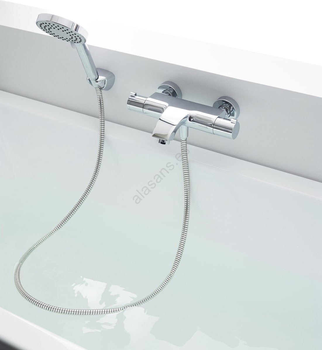 • Grifo termostático de pared para bañera que mantiene la temperatura del agua constante y garantiza un llenado de la bañera seguro y confortable.