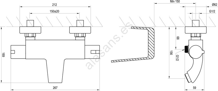 • La distancia entre centros de 150 mm permite la instalación en todas las bañeras Ravak.