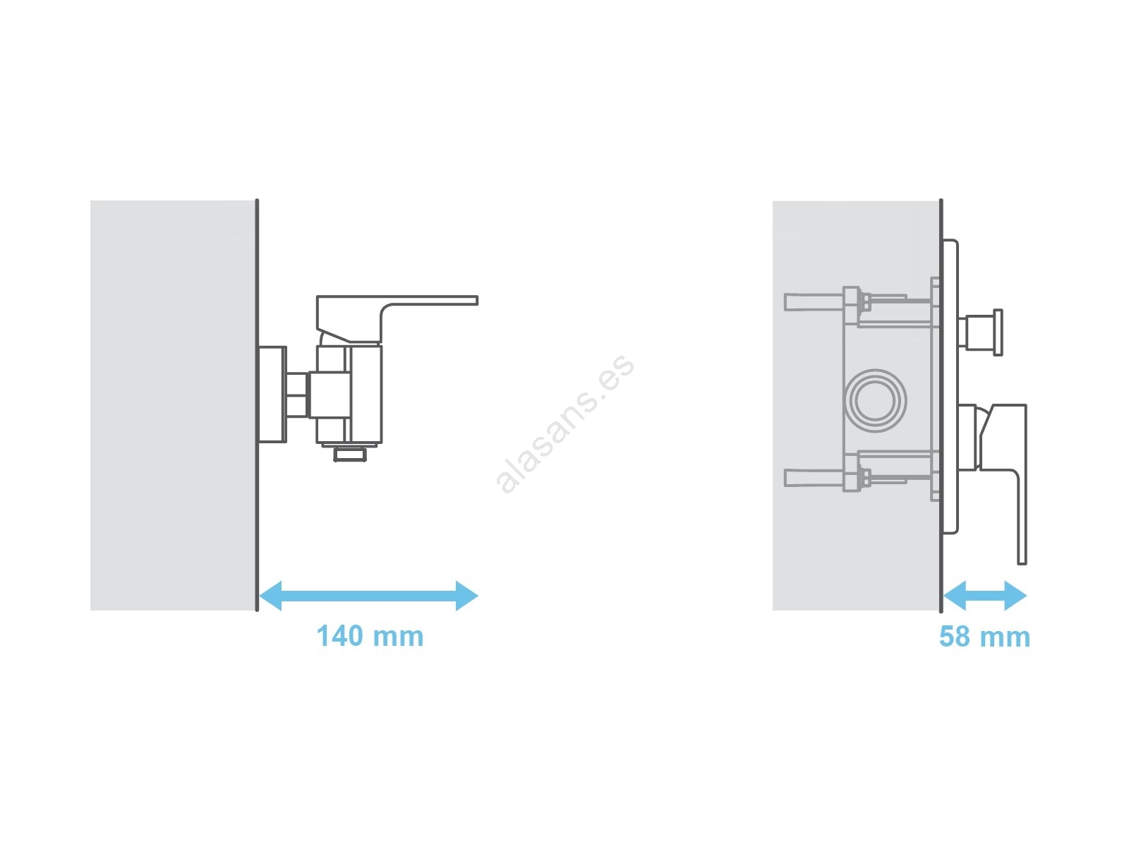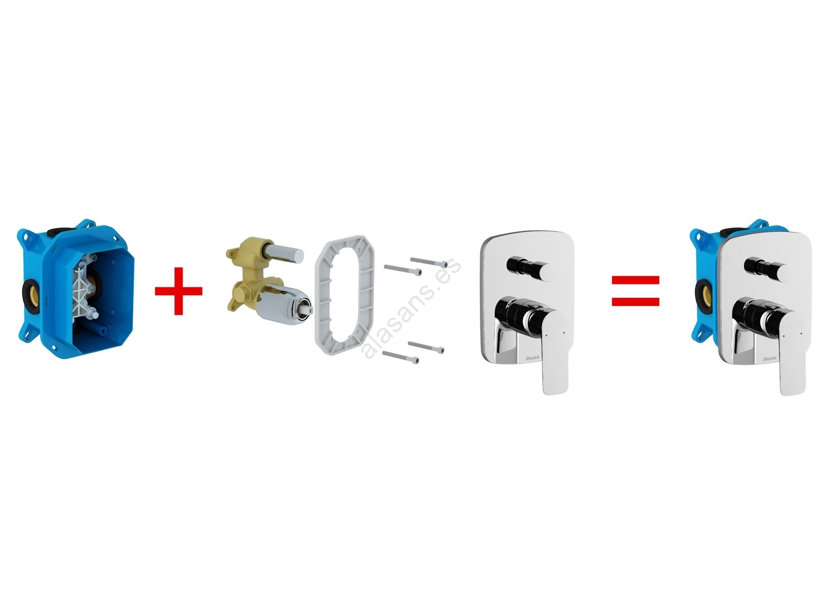 • Sistema de instalación universal para grifos empotrados monomando de bañera y ducha, integrado en la pared.