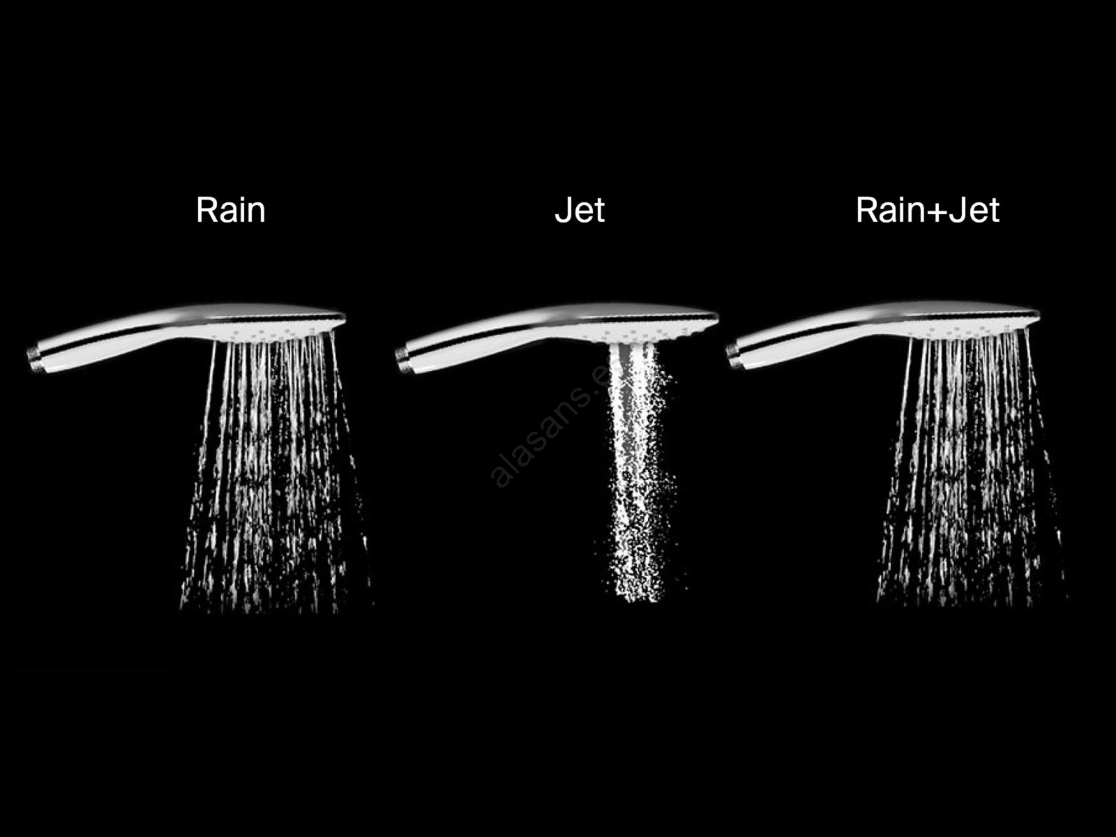• El set también incluye una ducha de mano que ofrece 3 funciones de chorro diferentes.