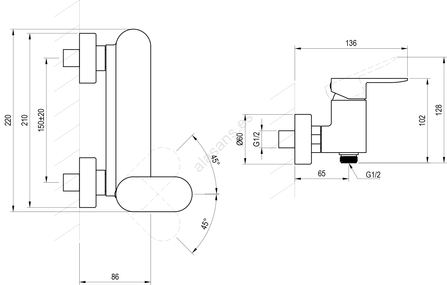 • La distancia entre ejes es de 150 mm, compatible con las instalaciones estándar.