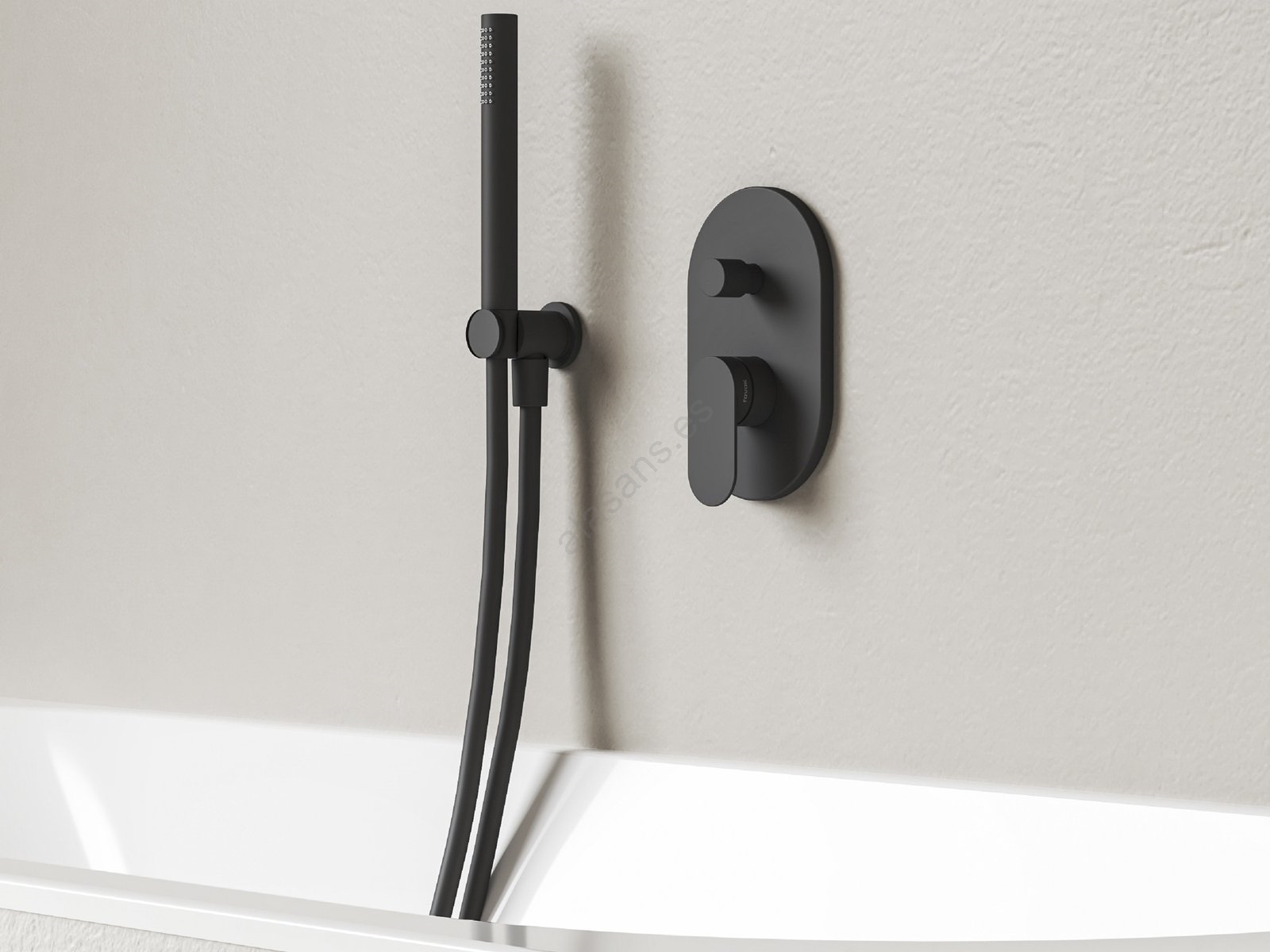 • El grifo empotrado de 2 vías Chrome II en elegante negro está pensado para su instalación en el R-box.