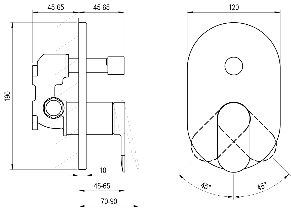 • La configuración de dos vías con desviador automático permite cambiar fácilmente entre dos salidas, generalmente entre el llenado de la bañera y la ducha, o entre la ducha fija y la ducha de mano.