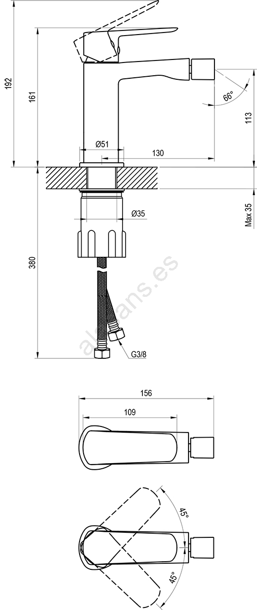 • Mangueras de conexión: flexibles de 450 mm, rosca G3/8.