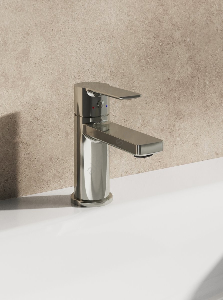 • El grifo de lavabo Solar en acabado cromado brillante tiene una altura de 135 mm y está equipado con un cartucho cerámico de 35 mm de diámetro.