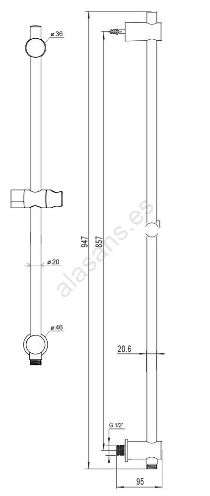 • Salida de agua empotrada directamente en la barra con rosca exterior G1/2".