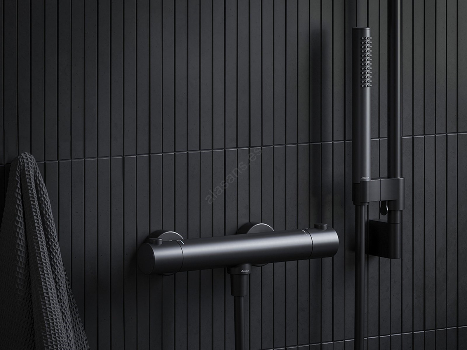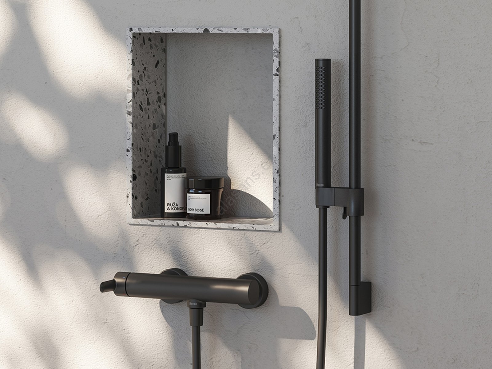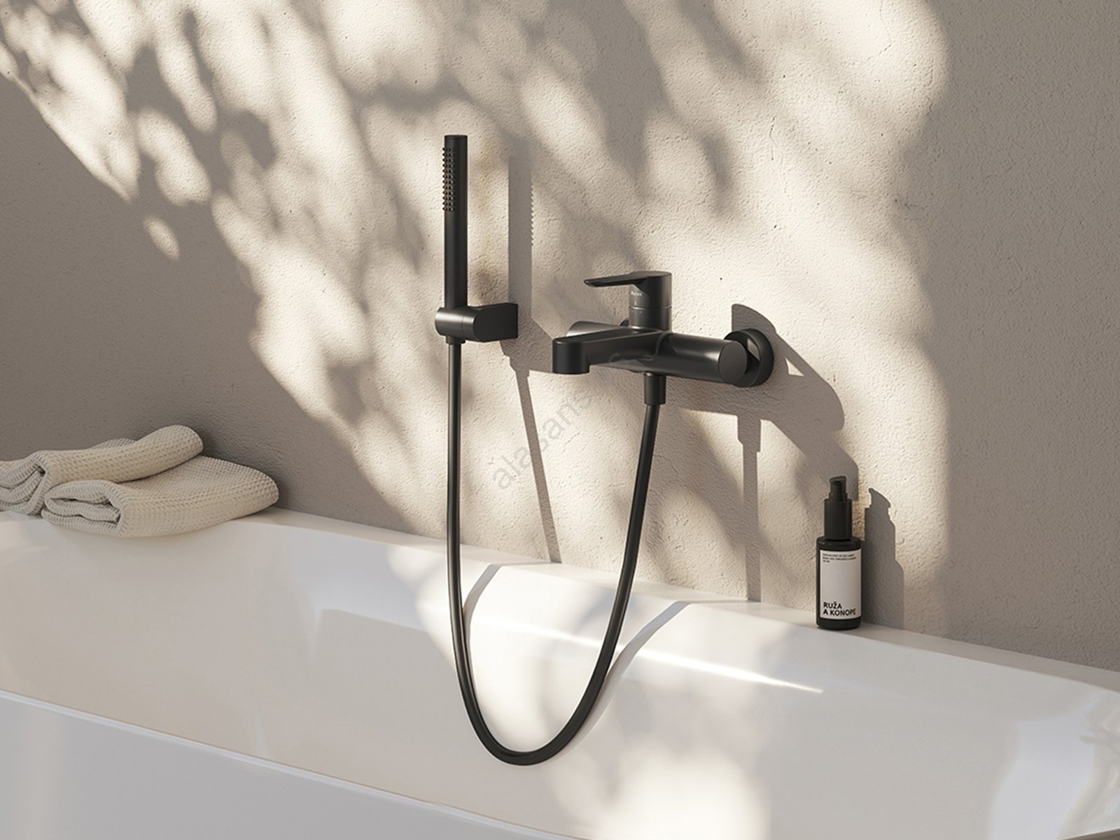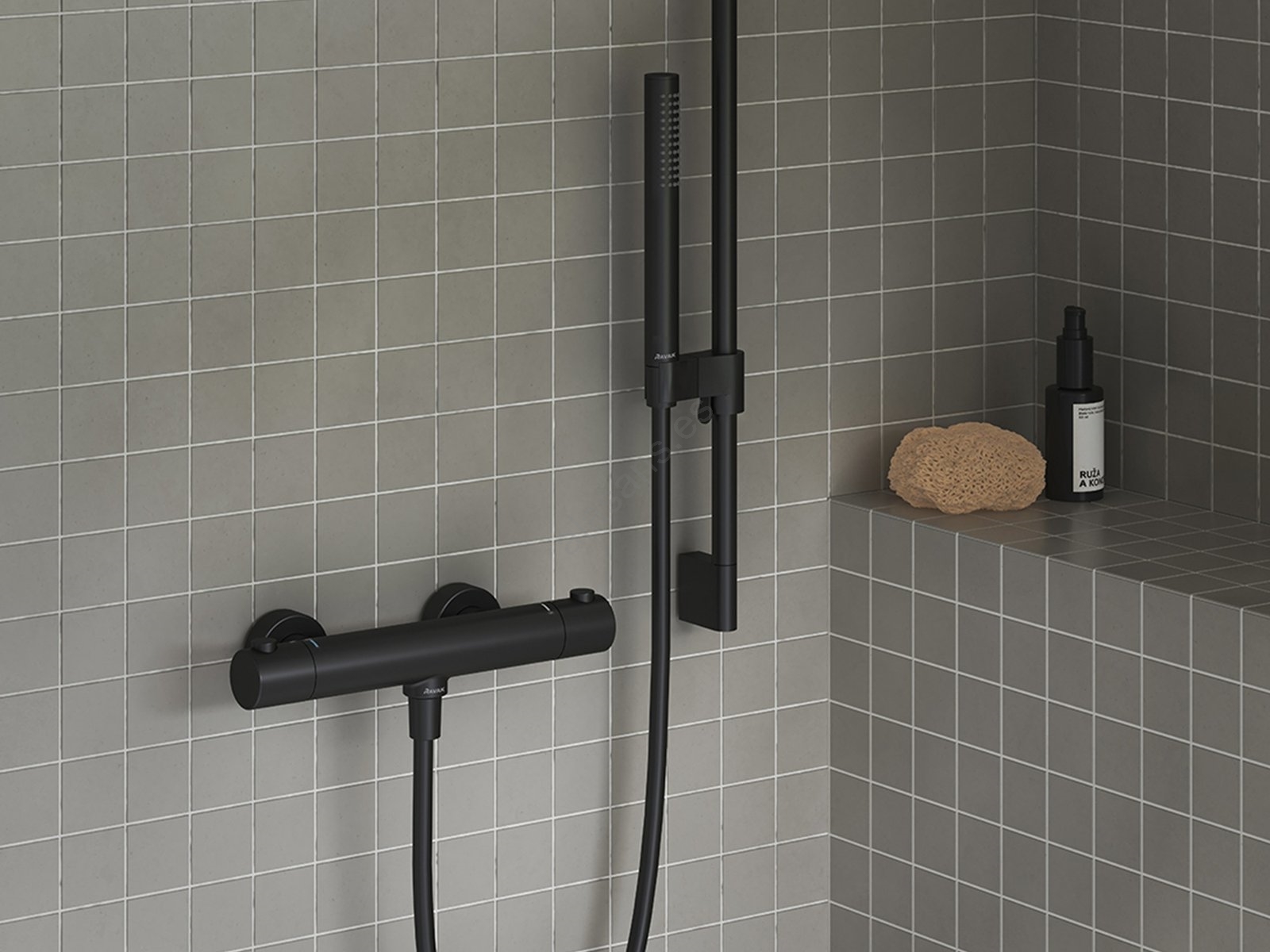 • La ducha de mano de una sola función destaca por su moderno acabado en negro.