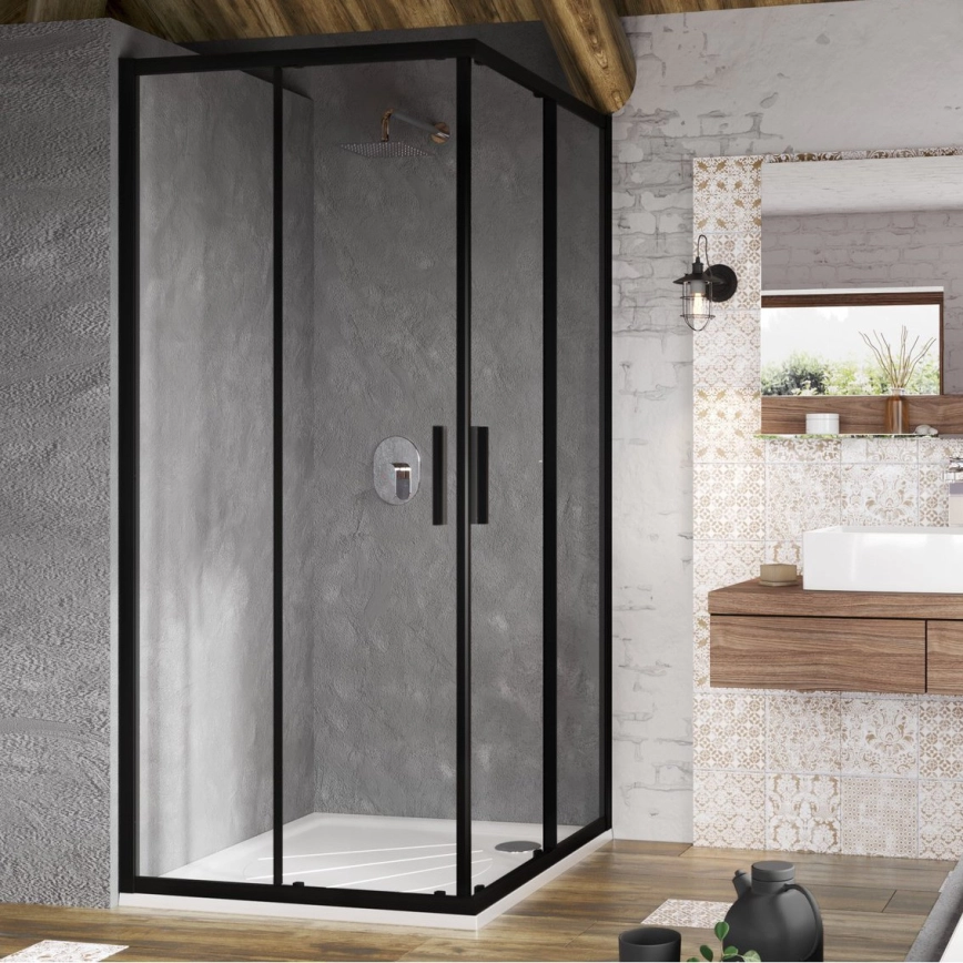 Ravak X1LM70300Z1 - Mampara de ducha de esquina de cuatro paneles BLIX SLIM 90x90 cm negra