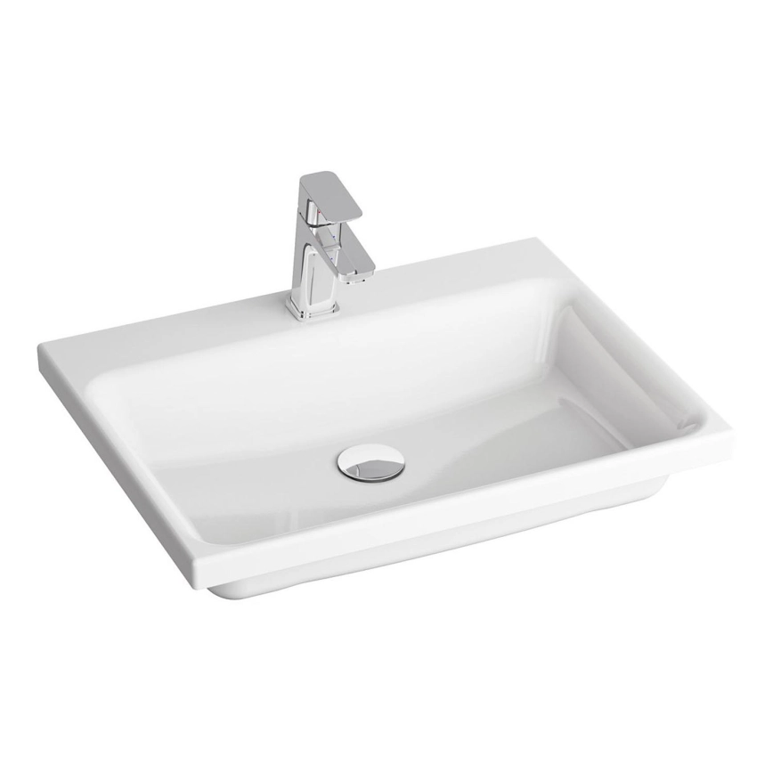 • Lavabo para mueble Comfort de 60 x 46 x 3 cm: un elegante lavabo cerámico diseñado para empotrar en un mueble suspendido.