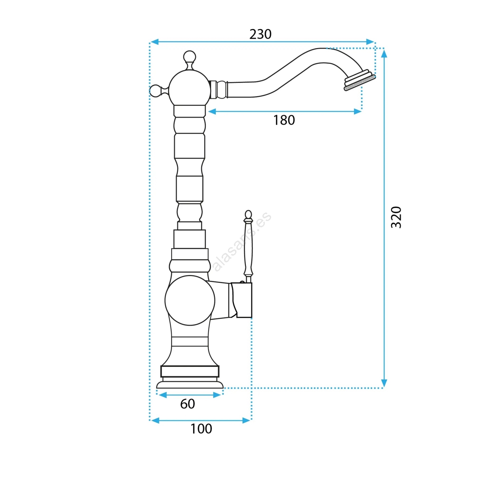 • El grifo está fabricado en latón de alta calidad.