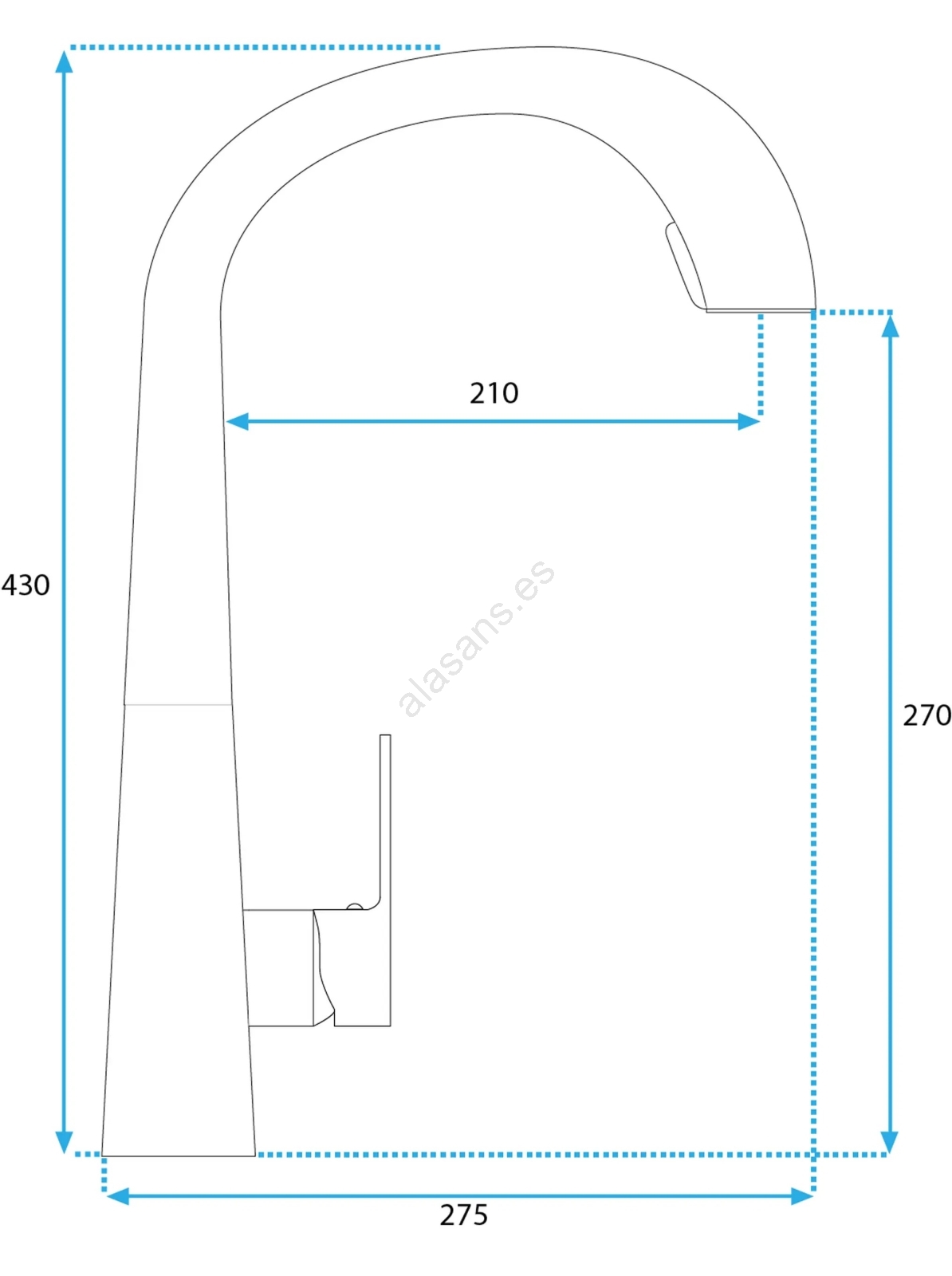• Grifo monomando de cocina, de alta presión y con caño giratorio.