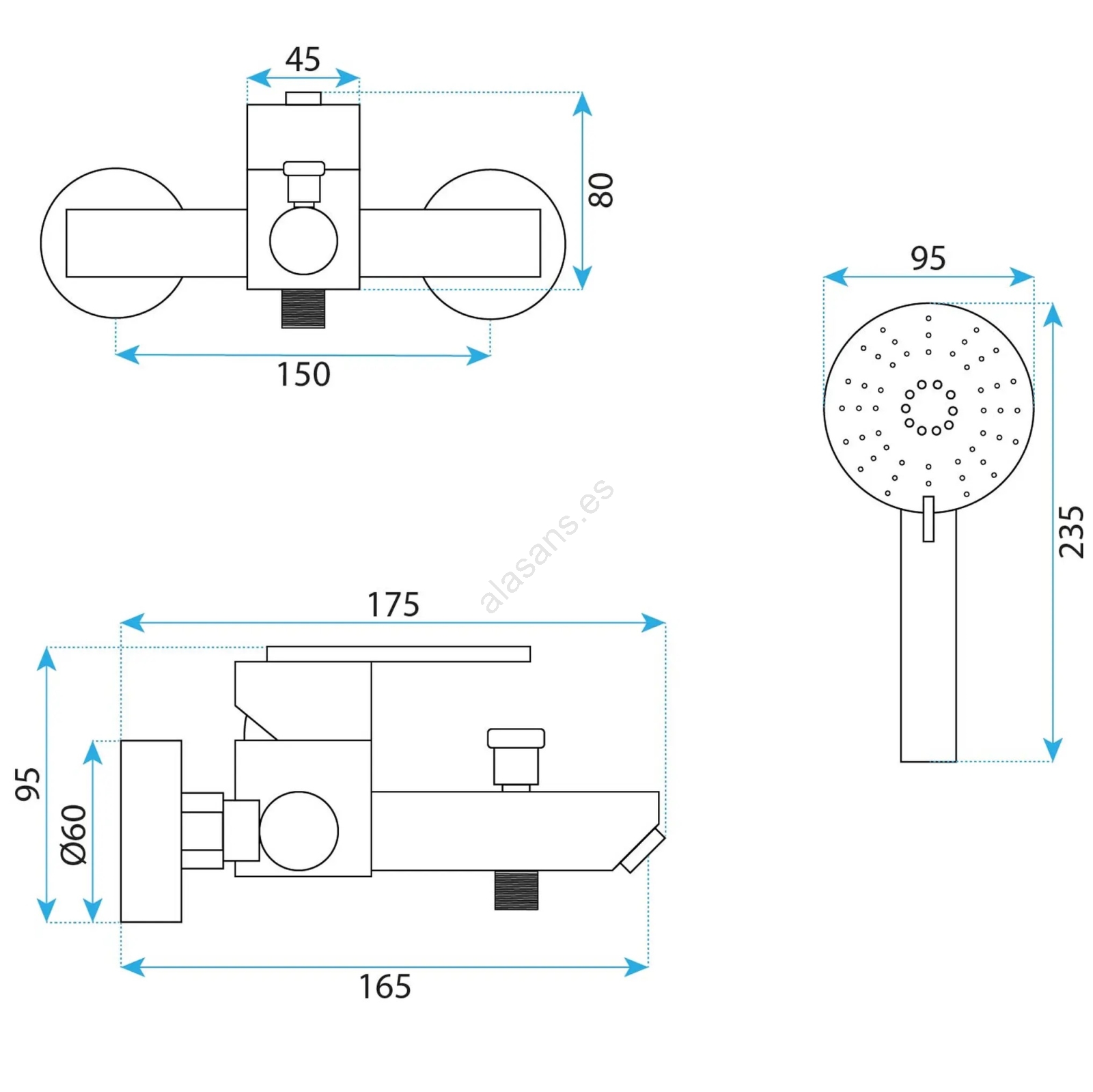 • Distancia entre las conexiones de agua: 150 mm.