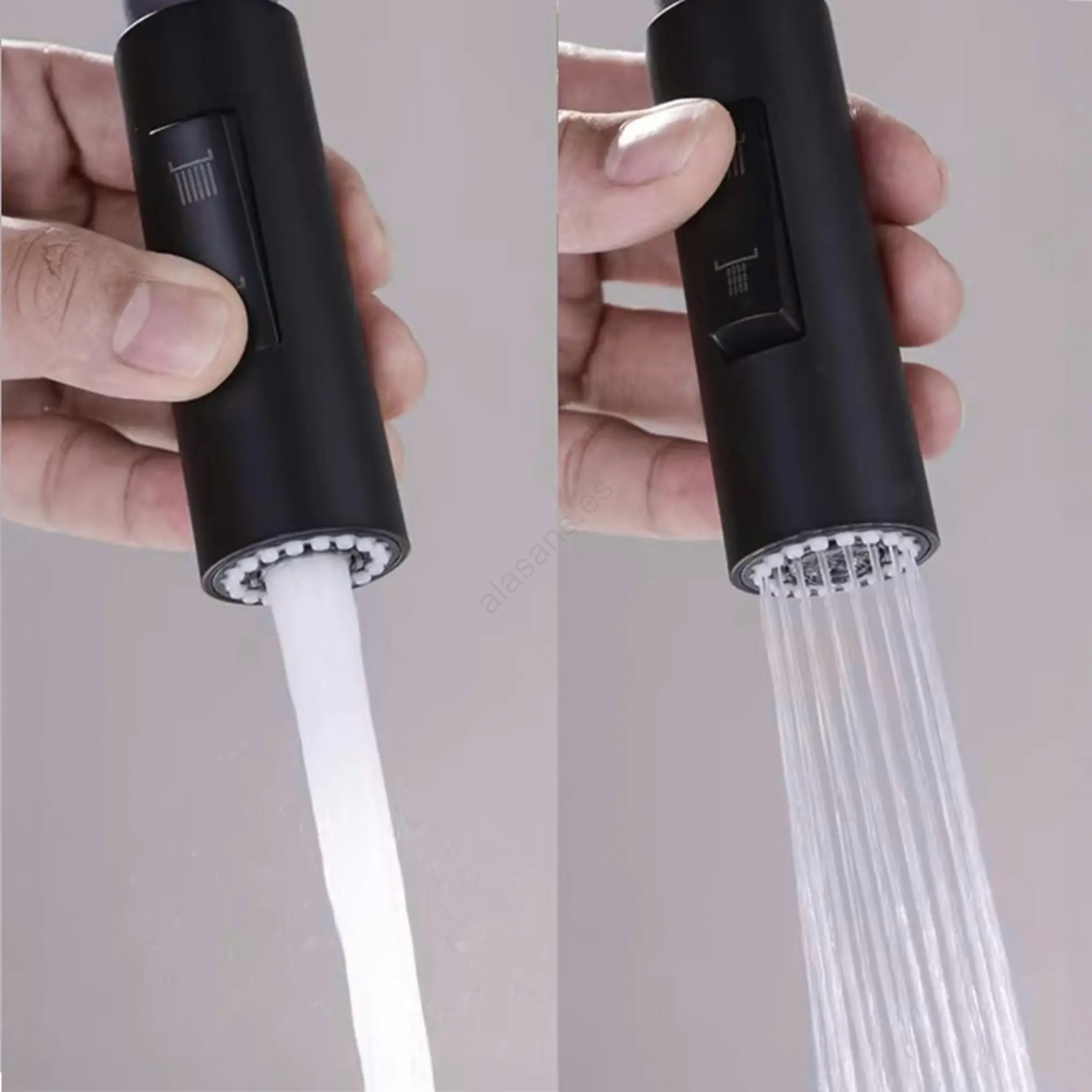 • La boquilla cuenta con un selector que permite elegir entre un chorro difuso y uno concentrado.