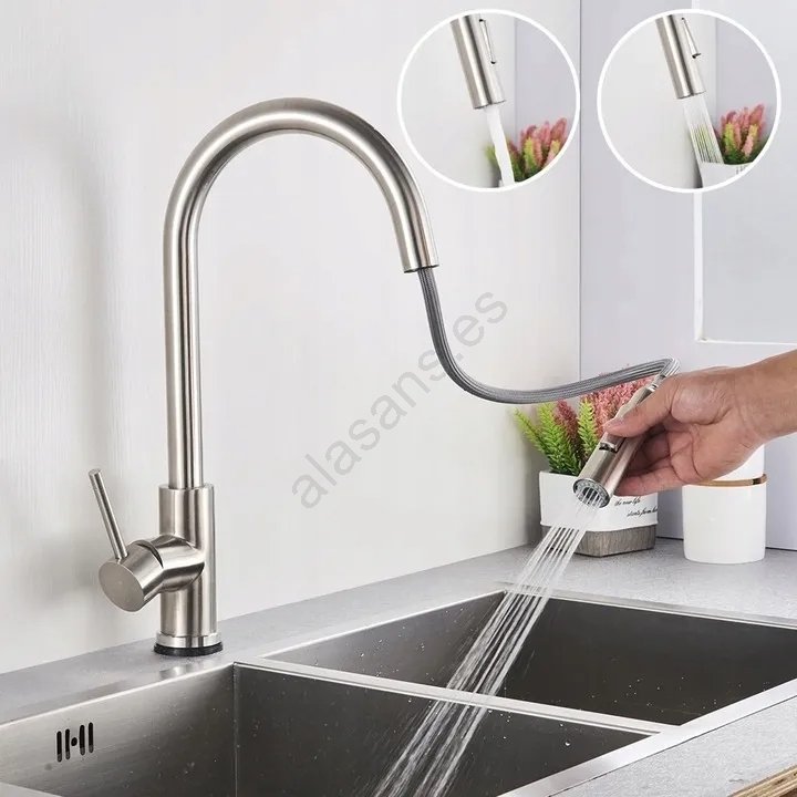 REA-B9146 - Grifo para fregadero con rociador extraíble FRESH, 39,5 cm, níquel
