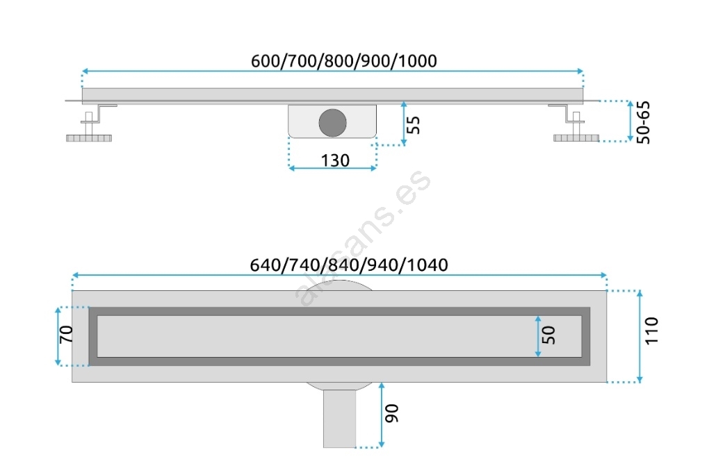 REA-G2704 - Canaleta de desagüe NEOX PRO 90 cm acero inoxidable/dorado cepillado