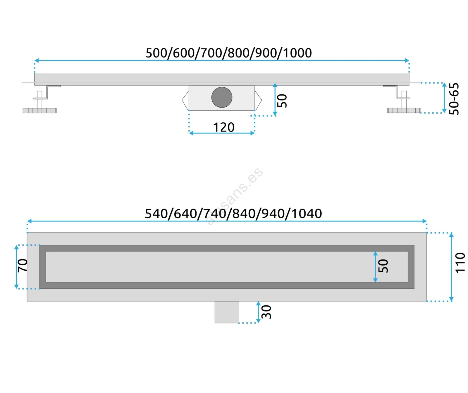 • Desagüe lineal de 100 cm en acabado negro mate.