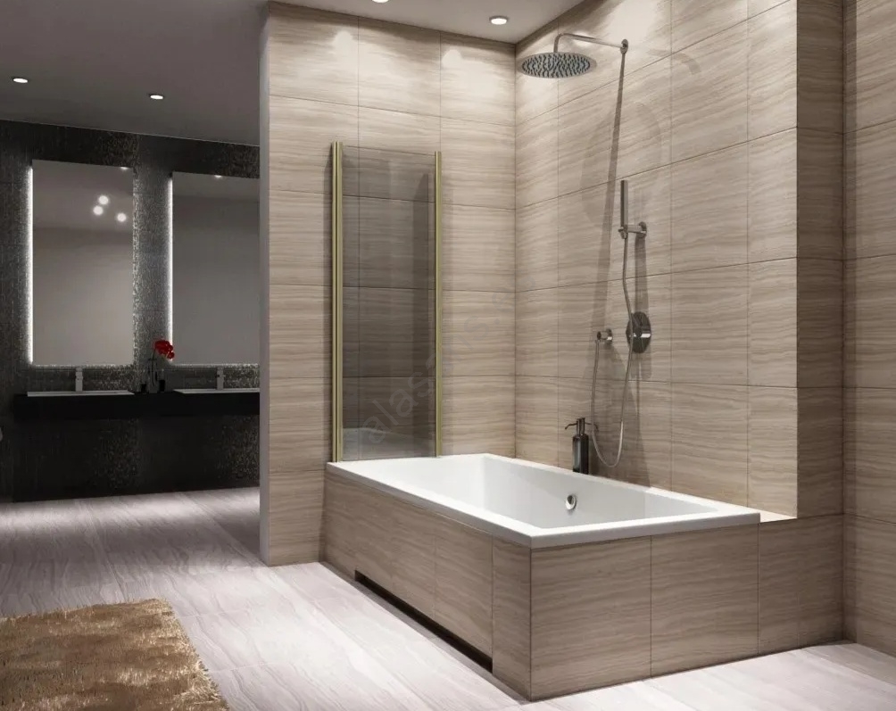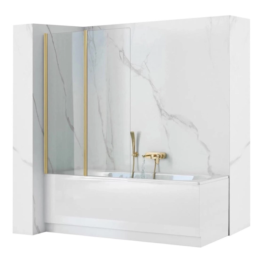 REA-K9777 - Mampara plegable para bañera AGAT 140x100 cm, acabado oro cepillado/cristal transparente