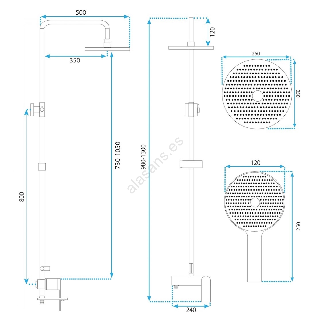 • Ajuste de la barra de ducha: 98 - 130 cm.
