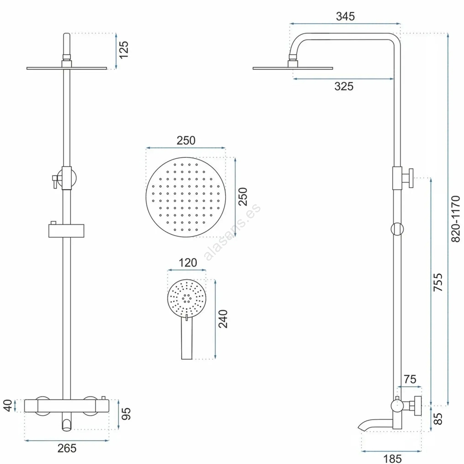 • Ajuste de la barra de la ducha: 82 - 117 cm.