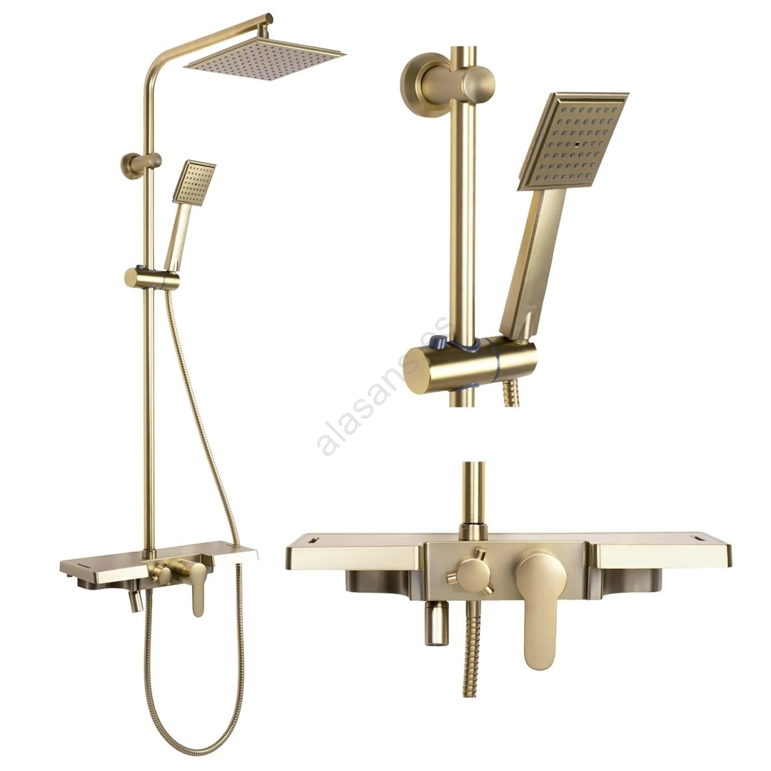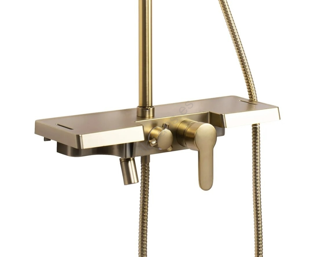 REA-P4121 - Juego de ducha BRAVO con grifería, acabado en oro cepillado