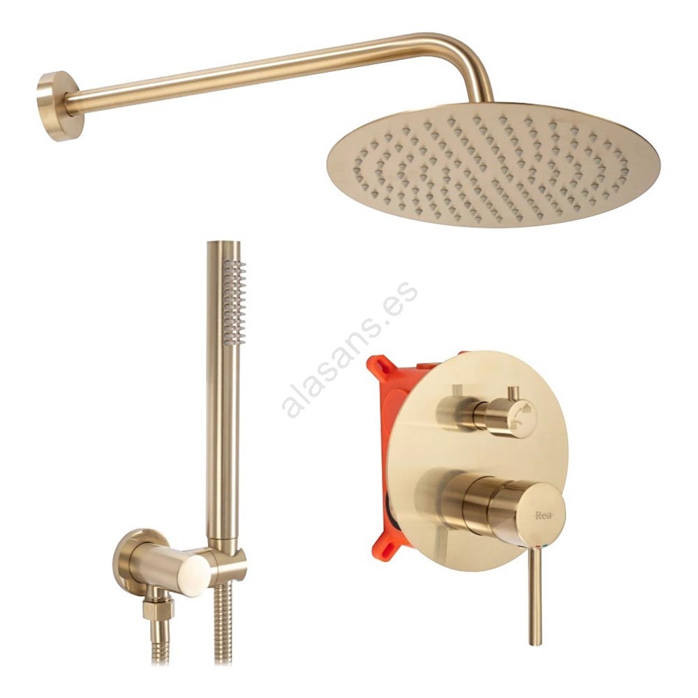REA-P4160 - Juego de ducha con grifería empotrada LUNGO oro cepillado