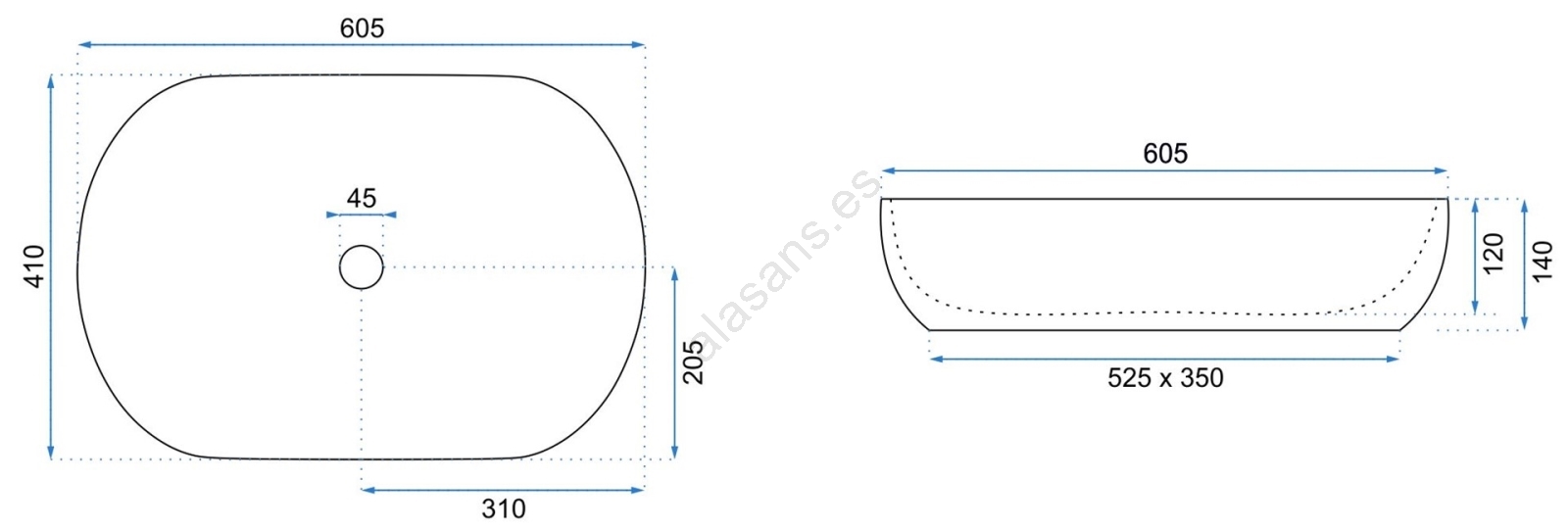 • REA-U0024 - Lavabo sobre encimera CLEO 41x60,5 cm cerámica/blanco brillante
